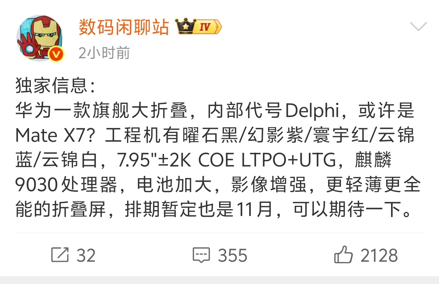 华为MateX7大折叠配置曝光更轻薄?更全能?那我更期待[并不简单]
