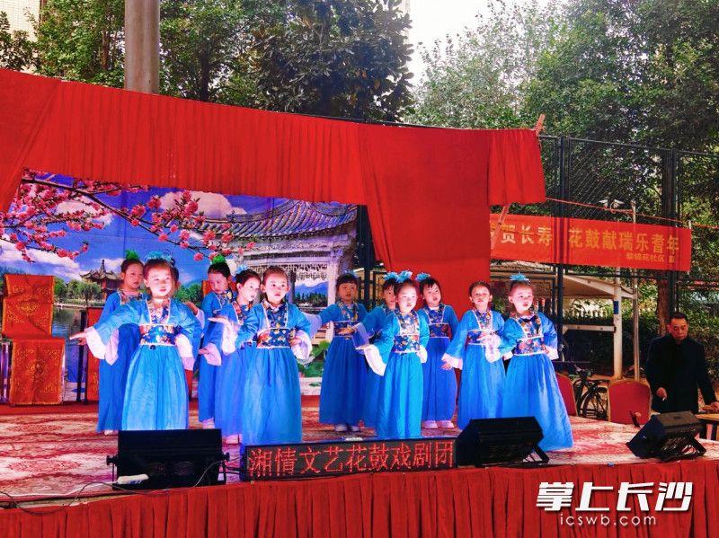 作为深受老年朋友喜爱的传统艺术形式,花鼓戏表演将整场活动推向高潮。韵味醇厚的唱腔、生动传神的演绎,让老戏迷们沉浸其中,掌声、喝彩声此起彼伏。不少老人一边跟着哼唱,一边感慨:“这些都是我们年轻时的记忆,能在重阳节听到,太亲切了。”