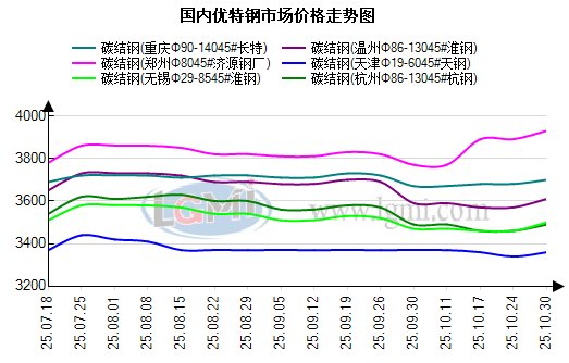 钢厂方面:今日常州东方优特钢出厂价格持稳运行,现45#碳结钢出厂3650元;杭钢优特钢日定价圆钢价格上调10元,现45#碳结钢出厂3540元,以上均为含税价格;临沂钢投优特钢出厂格持稳运行,现45#碳结钢出厂3420元;天钢优特钢出厂价格持稳运行,现45#碳结钢出厂3340元。