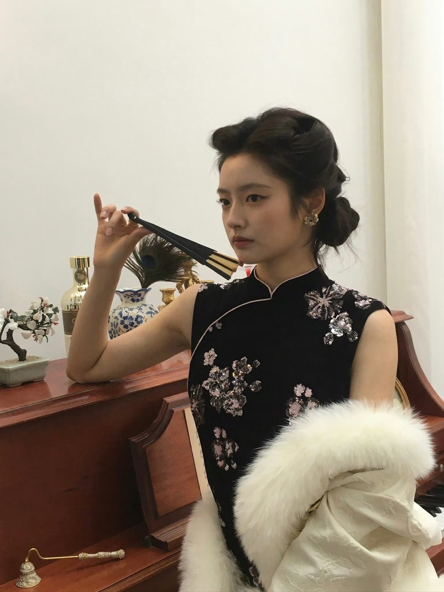徐若晗民国造型妈咪级别 救命!徐若晗这民国旗袍look直接把老上海风情焊在身上了吧!墨绿提花旗袍贴得身段玲珑,领口珍珠扣衬得脖颈又细又白,往藤椅上一坐,指尖搭着玻璃杯的样子,连光影都跟着温柔下来,这哪是拍照,明明是民国电影里截出来的名场面!
