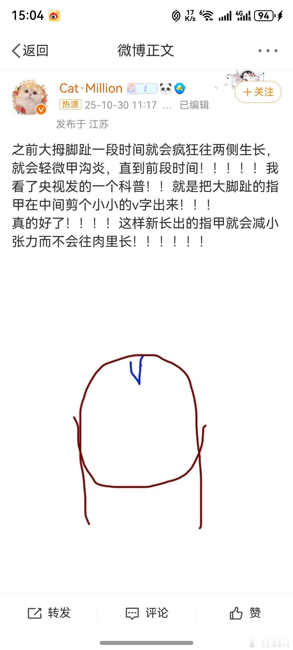 甲沟炎 剪v字 ,我建议还是直接去医院或者是专门修脚的地方把自己整,感觉整不好别问我咋知道的,我已经自己整了四五年了,都没啥作用,但是去了专业的地方几次就差不多了。[doge]