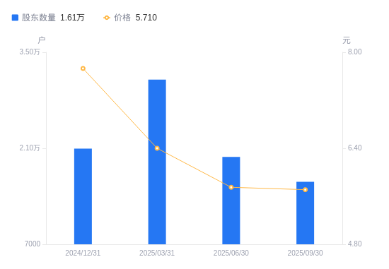 日期A股户数(户)流通A股户均持股数(股)户均持股市值(万元)2025-09-301610216147.069.222025-06-301972713179.917.582025-03-31310138383.585.372024-12-312095912405.179.592024-09-302240011607.148.982024-06-302394210859.586.992024-03-31306878472.648.182023-12-31344867539.298.092023-09-302029212812.9311.632023-06-302232111648.2211.21