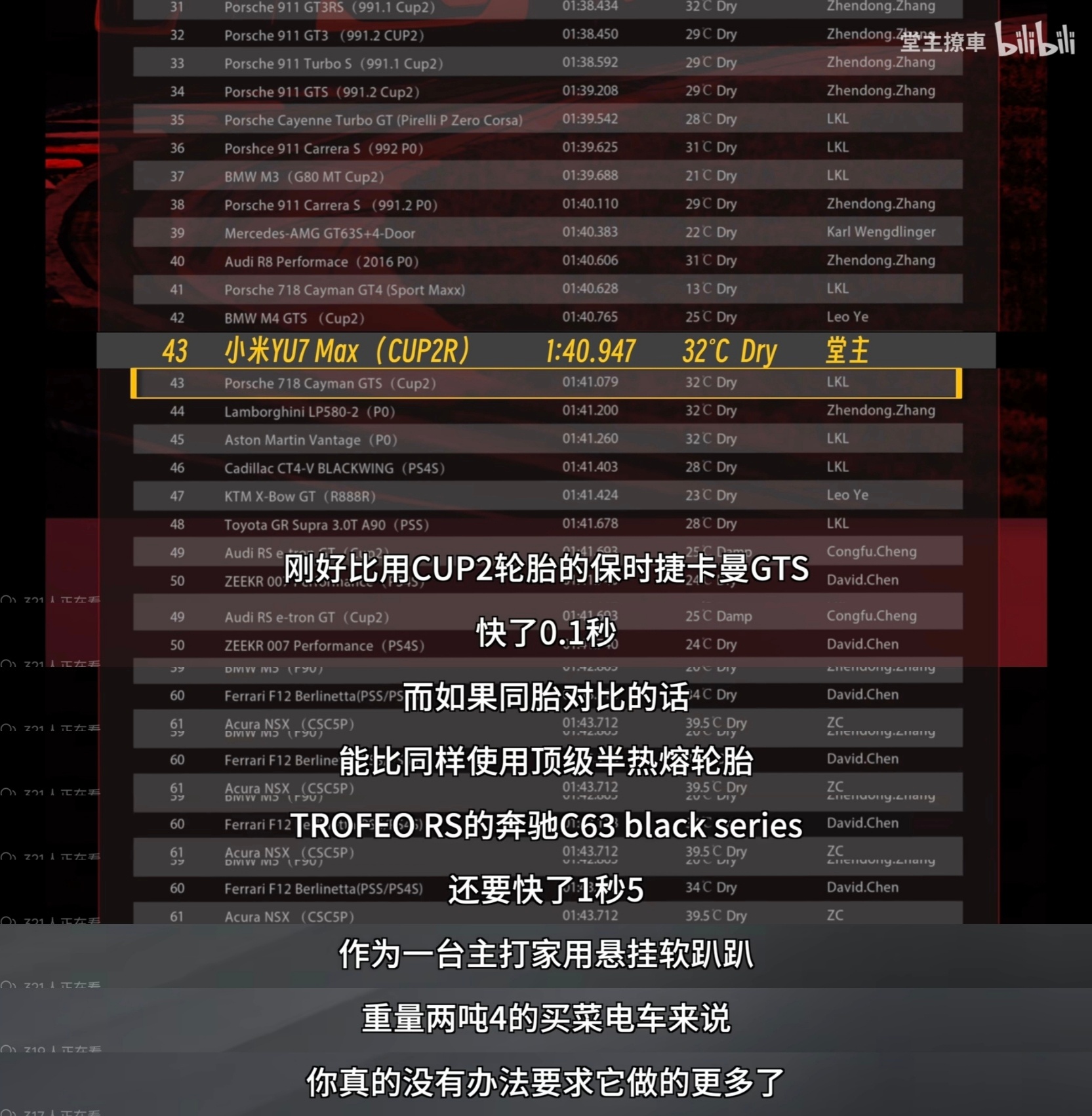 这个成绩有多牛呢?这么说吧,1:40秒,比用cup2轮胎的保时捷卡曼GTS快0.1S,比同样使用顶级半热熔胎奔驰AMG C63 Black Series(TR)快1.5S。