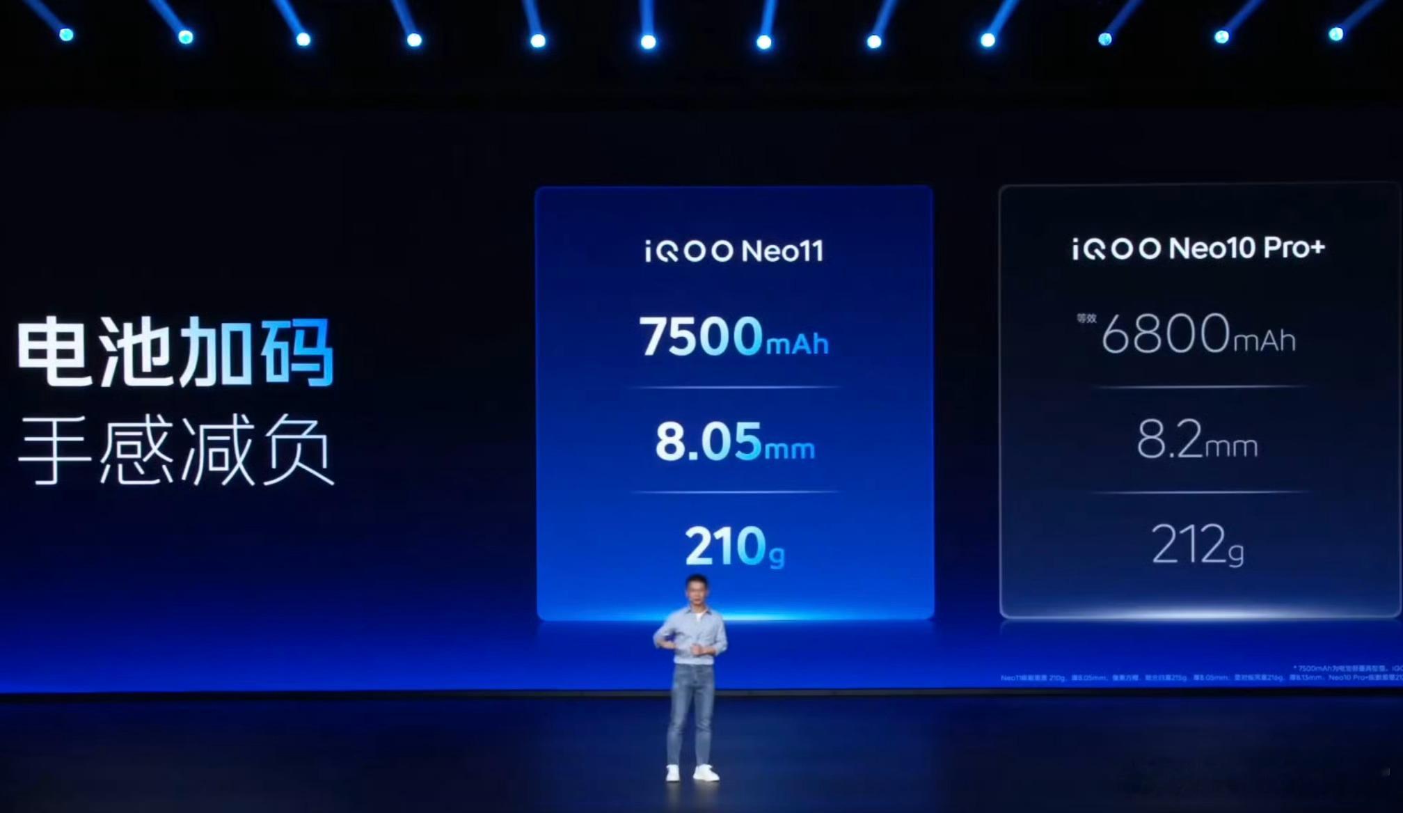 iQOO Neo11搭载骁龙8至尊版 + 自研电竞芯片Q2,LPDDR5X Ultra + UFS 4.1,配备8000mm²冰穹VC液冷散热系统,并且还针对学校场景首发了校园游戏专网。影像方面后置5000万主摄(LYT-700V) + 800万超广角双摄,内置7500mAh电池 + 100W闪充,机身厚8.05mm、重210g,等个价格?[笑而不语]