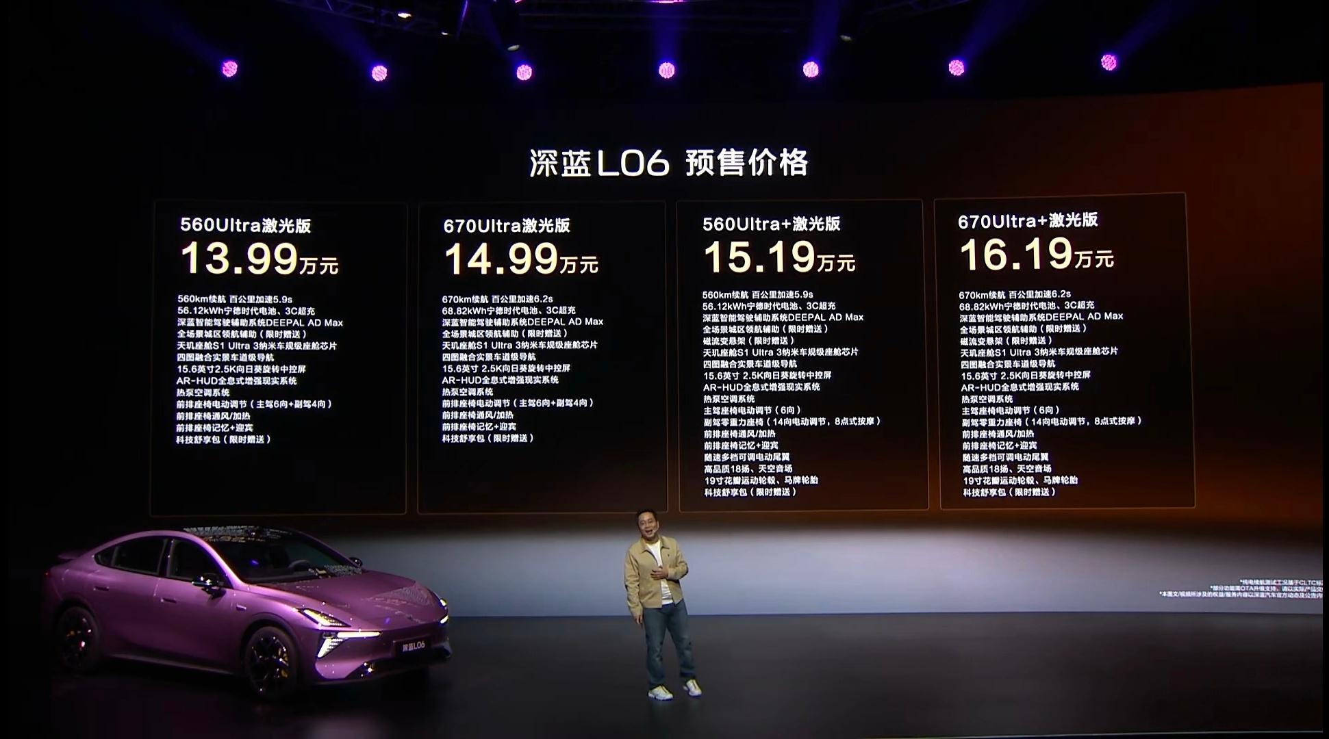 深蓝L06用众多离谱造就超级靠谱 深蓝L06开启预售,四个版本预售价在13.99万~16.19万之间。这次它最大的特色应该就是两个Ultra+版本限时赠送的磁流变悬挂了吧,每秒最多1000次的主动动态阻尼调整能力,无论改善驾驶体验还是优化舒适性上限都是很不错的[并不简单] 深蓝L06入门满配预售价13.99万