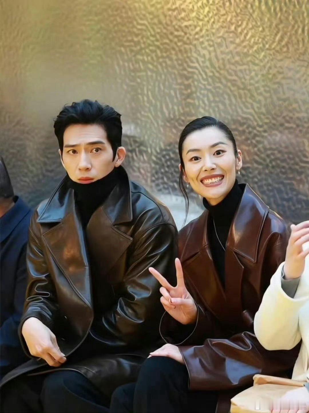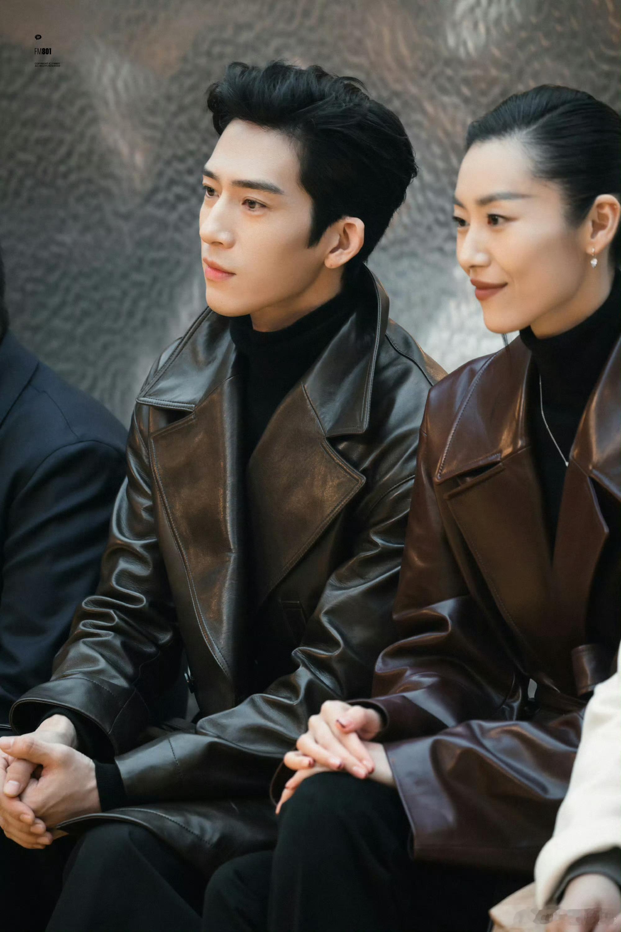 刘雯井柏然秀场情侣装惊艳亮相!酒红皮衣搭配默契内搭,细节呼应间尽显高级时尚感,这波同框太养眼