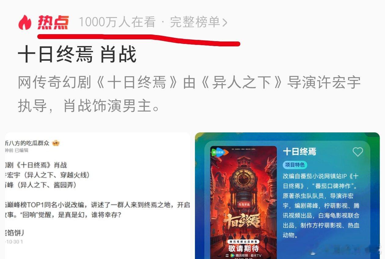 10月30日,肖战下部剧《十日终焉》,无限流悬疑题材小说巅峰第一名,🍅镇站之作
