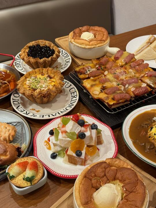 万达金街!又好看又便宜!人均才30➕的漂亮饭谁能不爱啊啊啊! 进去才知道是膳集吉的升级版! 但是!价格却依然亲民🥹 几十块就可以吃的饱饱的! 棉花糖烤红薯咖喱猪排饭🍛云朵舒芙蕾🥞超大蛋挞🥧等等!!都很值得一试!! - 📍 半花半糖