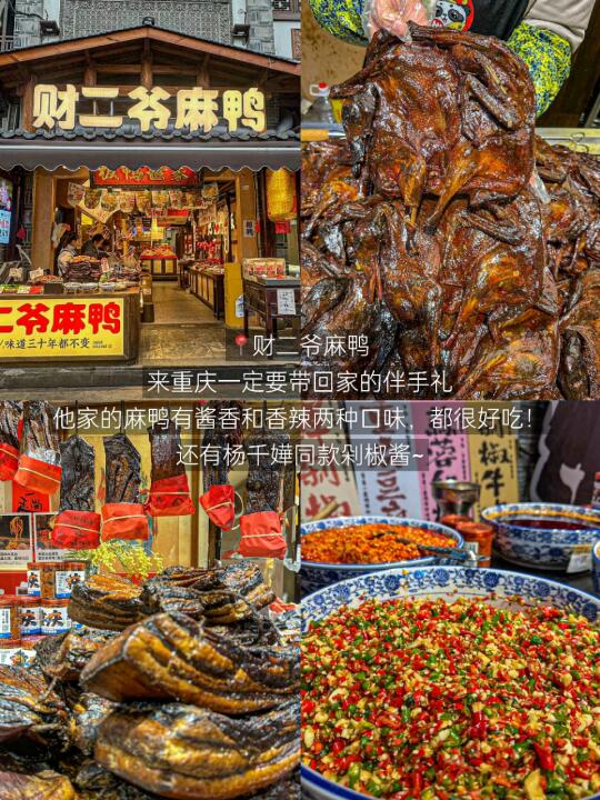 三天两夜特种兵来重庆狂炫18顿,本地人带路之一顿也没踩雷‼️愿意为了这些好吃的来重庆1️⃣0️⃣0️⃣次🥳 - ✅早餐可以去吃:鑫麻抄手 ✅中午可以去吃:山城家常菜、醉八仙热酒馆、富丽华饭店、海关荤豆花 ✅必吃的正餐及小吃:杜姐麻辣串、利火锅、莉姐火锅(洪崖洞店)、陈婆婆火锅(五一巷店)、丁孃孃火锅(解放碑店)、老丘丘、糖潮甜品 ✅夜宵可以去吃:知味脆皮鸡、小张烧烤 ✅买重庆特产就去:财二爷麻鸭 - -重庆重庆旅游重庆美食重庆火锅重庆攻略重庆必吃榜重庆必吃重庆打卡重庆特产