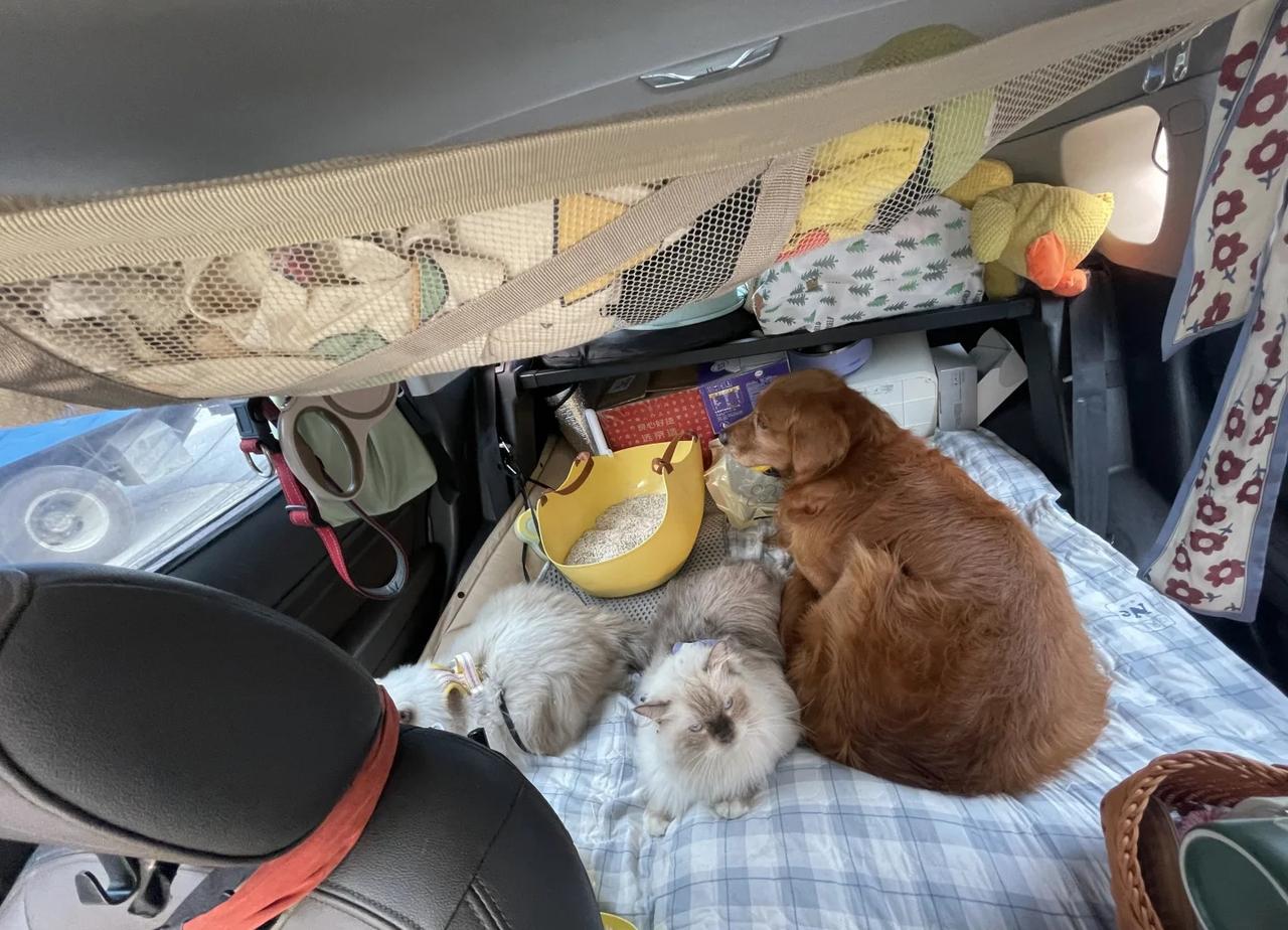 一人一狗两猫床车自驾第三天 国道的魅力:全是大货车 西瓜胖妞妞终于也是慢慢放松了下来,原先一直躲在角落里 终于吃上了热乎的饭菜,饿的不得了吃了两碗饭 重新收拾了车里面地方大多了 这几天太匆忙了[恐惧] 明天好好休整一天,开始拍视频,介绍一下我的装备,喜欢的友友可以关注一下吖!评论区留言吖自驾游 带着猫去旅游 床车旅行 床车自驾游
