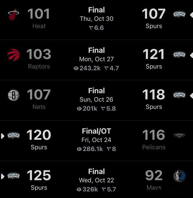 5场比赛,场均30.2分14.6篮板3.4助攻1.4抢断4.8盖帽,攻防两端一把抓的文班,不仅成为历史上首位在赛季前五场比赛达成得分150+盖帽20+的球员,还带领马刺拿到队史首次的开局五连胜