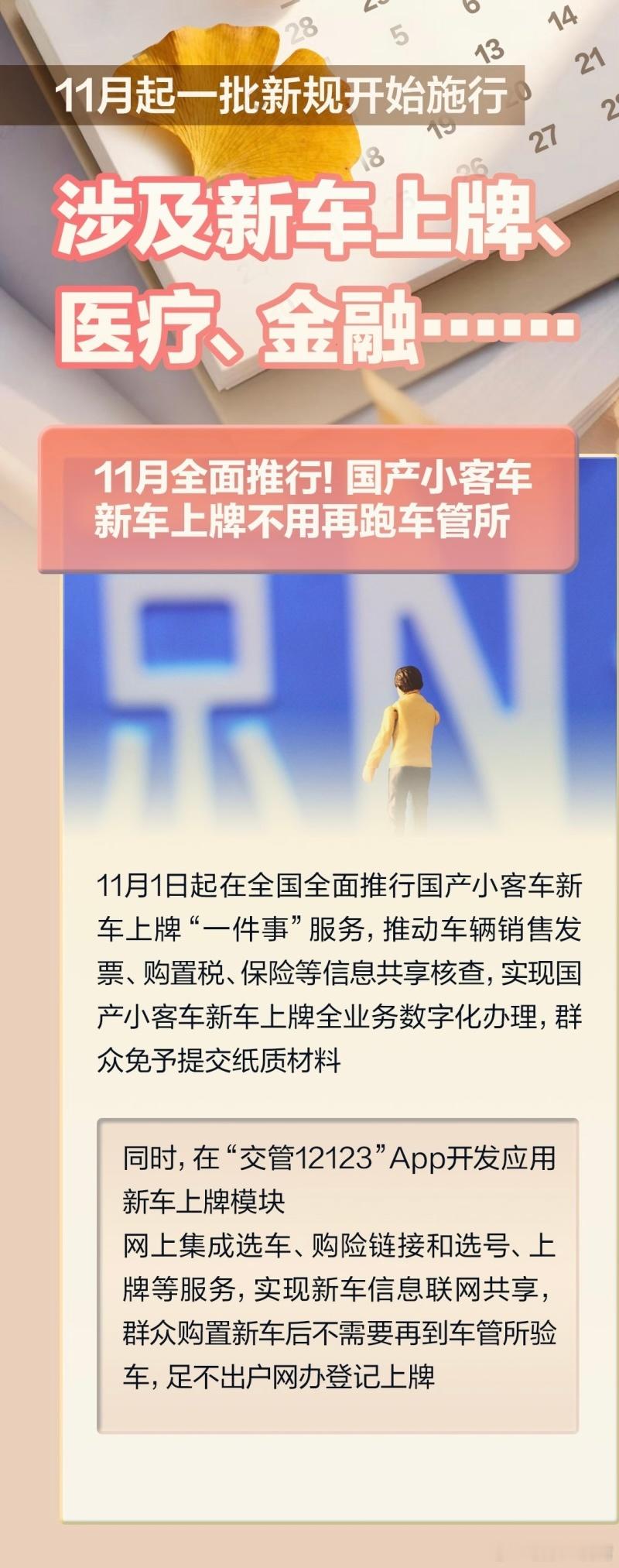 11月一批新规将施行讲道理国产小客车新车不需要再去车管所上牌这点是真心方便,省时