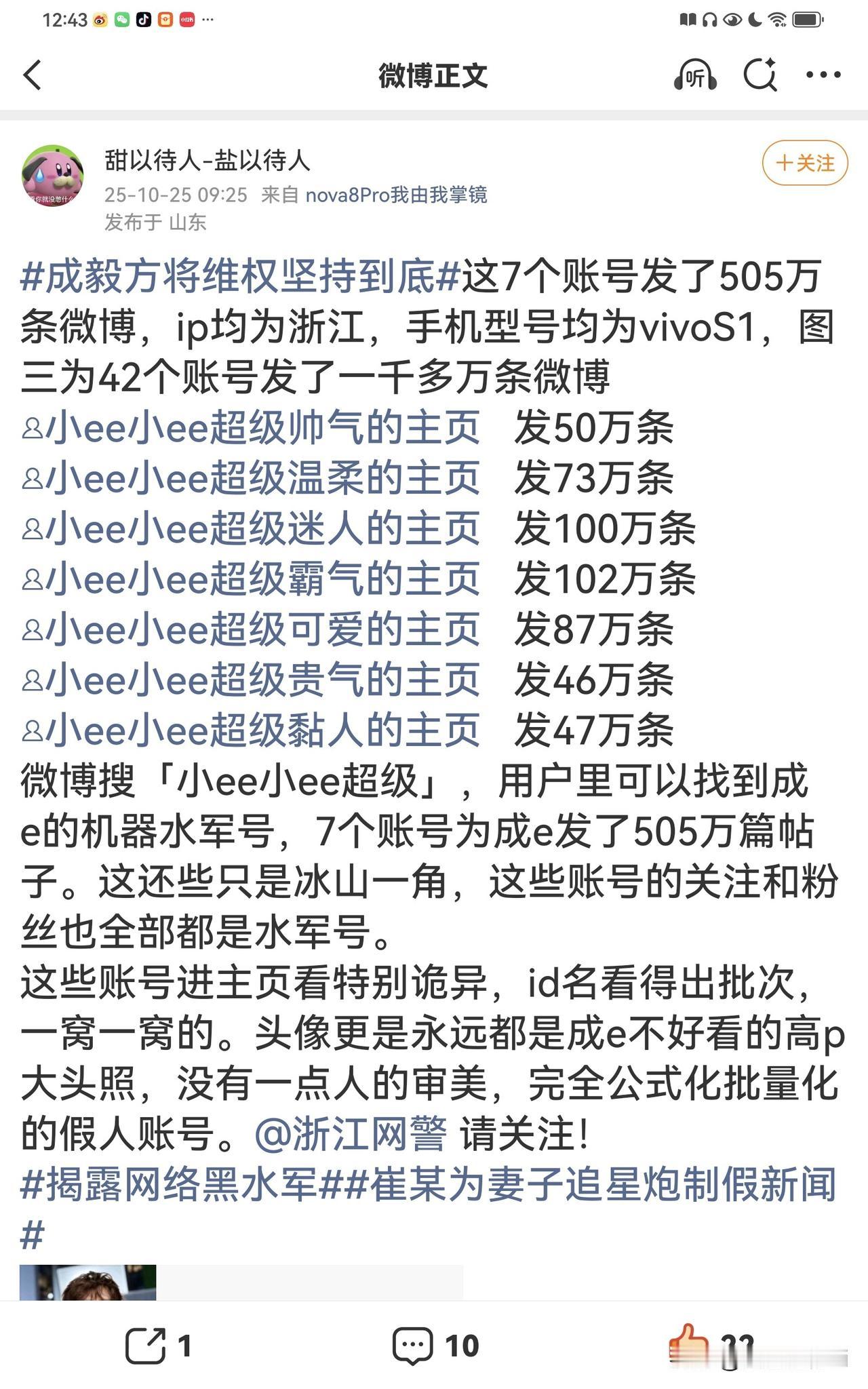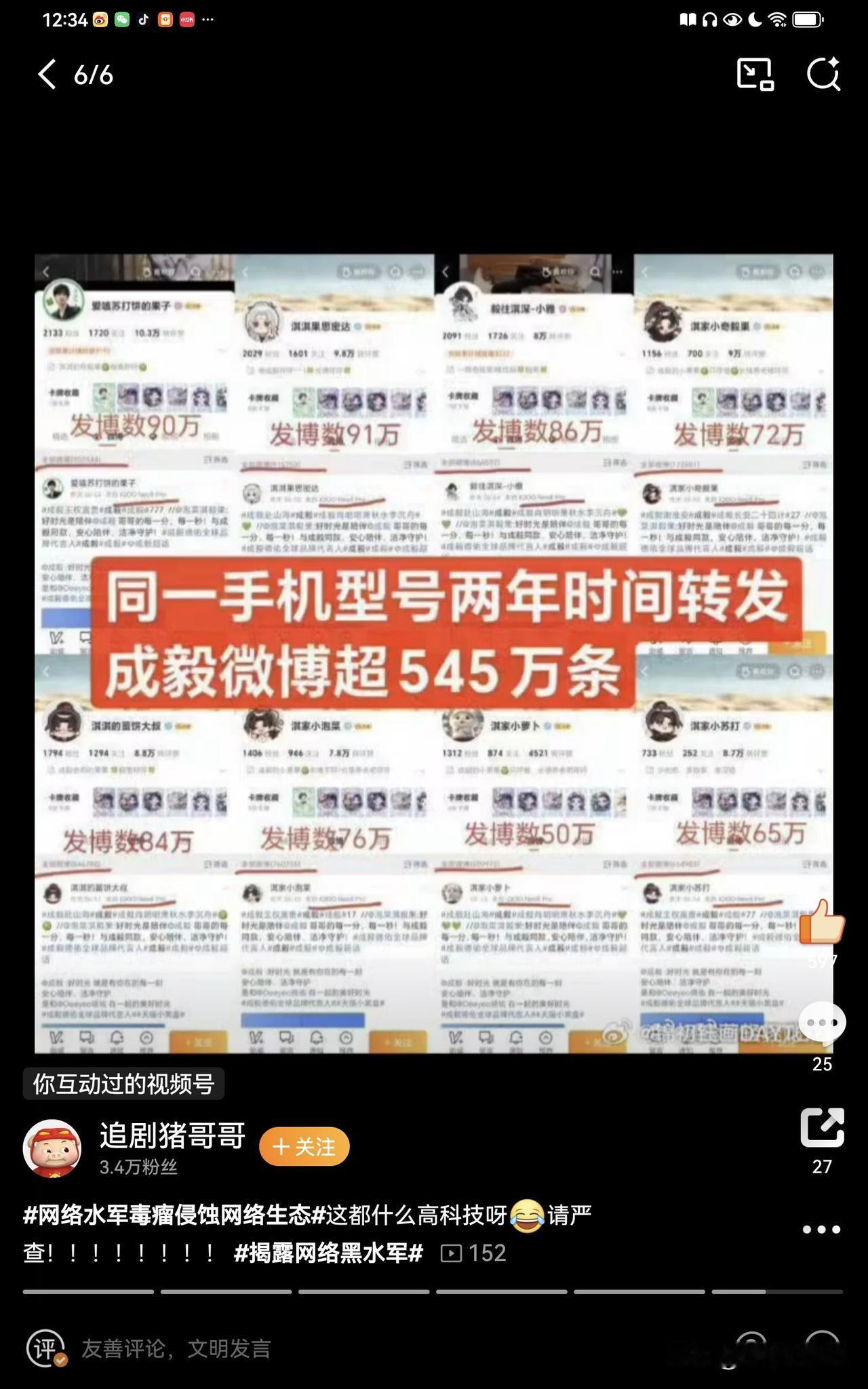 揭露网络黑水军明星公然买氵,一个粉丝一年可以转发几百万条微博,不是机器人是万万做不到的。国家要赶紧清除这些毒瘤,如果这种机器操作成熟了以后,这种手段用来引导攻击国家媒体安全,社会新闻,那就太可怕了