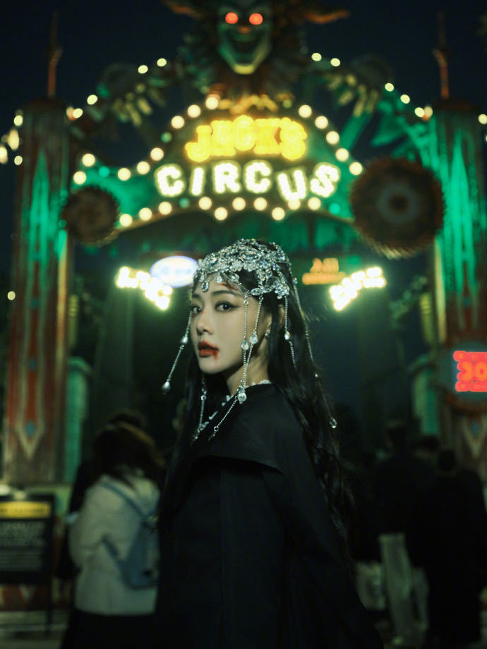 邓家佳cos暗黑女巫 暗黑奇幻风的邓家佳,有种神秘破碎感。