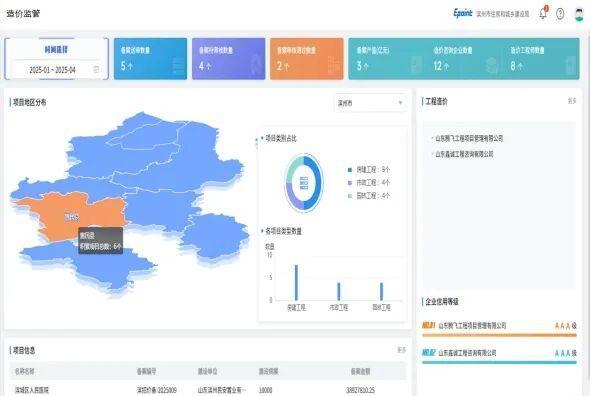 创新研发滨州市工程造价智能监管平台,实现企业与人员动态监管、最高投标限价“一键云备案”、造价数据自动归集分析及多层级造价指标与材料价格信息动态发布等功能。作为典型案例,在全省“数字造价”建设成果交流与案例分享会议上获经验推广。目前,已注册造价咨询企业70家、造价工程师434名,办理65个项目限价备案,发布3期造价指标、6期材料价格。