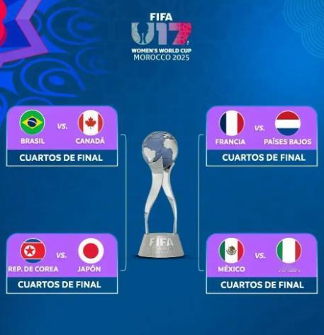 U17女足世界杯八强出炉,几家欢喜几家愁! 北京时间10月30日凌晨,摩洛哥赛场多场对决尘埃落定。 中国女足在1/8决赛0 - 3负于巴西,遗憾止步。 开场3分钟就丢球,下半场连失两球,绝佳破门机会也没抓住, 身体对抗、中场运转等问题暴露无遗。 而日本队4 - 0横扫哥伦比亚, 朝鲜队6 - 1狂扫东道主摩洛哥,尽显强队风采。 西班牙点球大战惜败法国, 加拿大6 - 0血洗赞比亚, 墨西哥小胜巴拉圭, 意大利大胜尼日利亚。 接下来四分之一决赛, 上半区会有加拿大与巴西、日本与朝鲜的较量; 下半区法国对荷兰、意大利对墨西哥也预计看点十足。 中国女足虽失利,但经历是财富,未来或许会卷土重来。