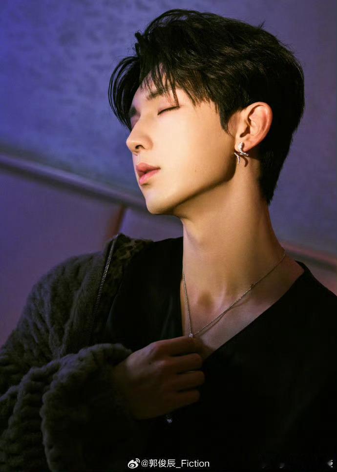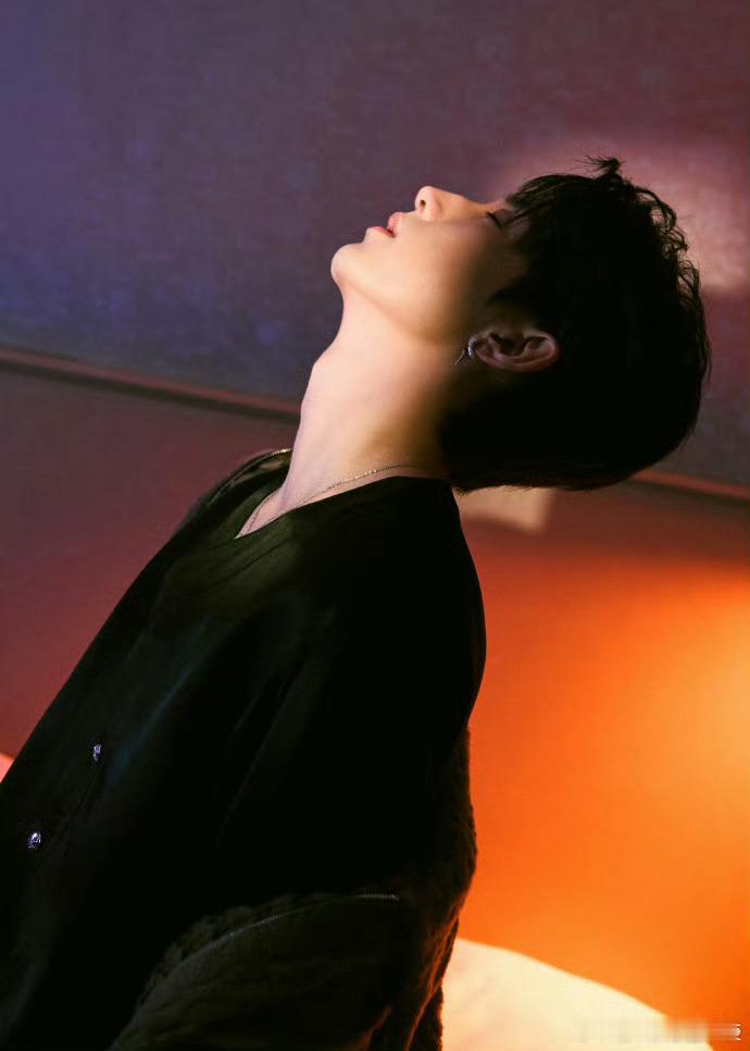 郭俊辰落肩掐脖背影 纯黑衬衫显宽肩窄腰,抬手掐脖+闪钻耳钉,冷感与少年感融合,超心动!