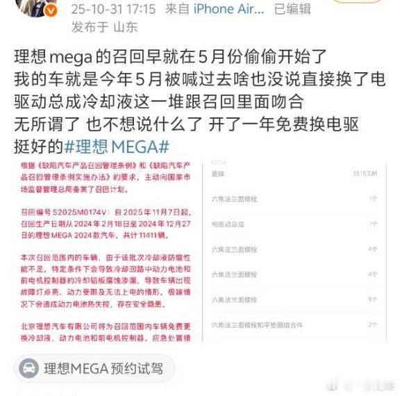 这样子。。。[柯基]理想就车辆起火道歉MEGA2024款电动汽车部分召回