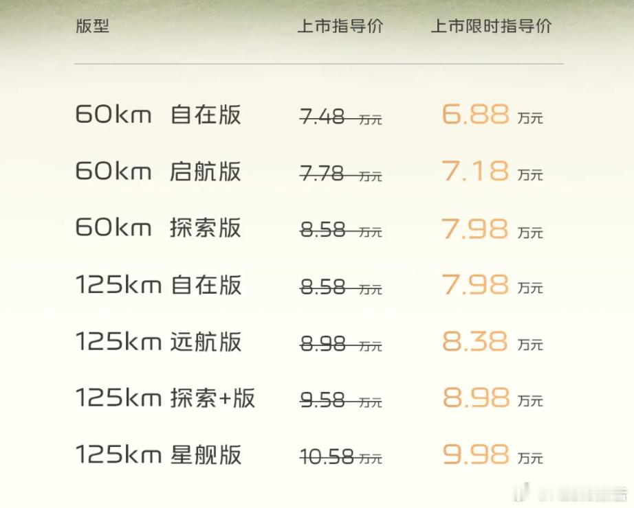 10月30日,吉利银河星耀6正式上市,共推出7款车型,售价区间为7.48-10.58万元,上市限时指导价为6.88-9.98万元。