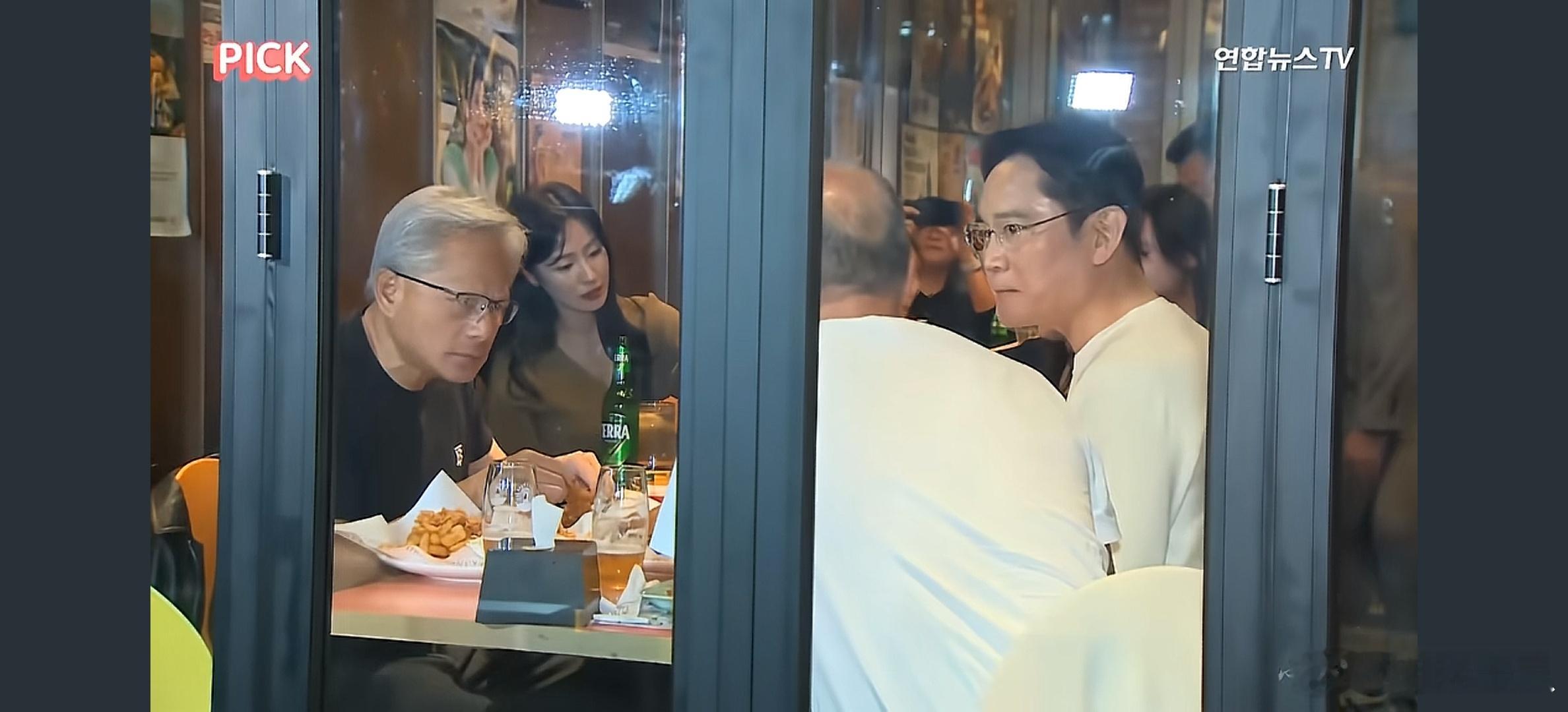 英伟达CEO黄仁勋到访韩国,跟三星集团会长李在镕、现代集团会长郑义宜,一起下馆子。