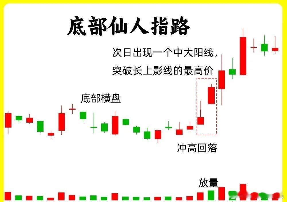 仙人指路形态,是主力的试盘手法,我认为是由两根K线组合,并不是长上影K线就是仙人指路形态。