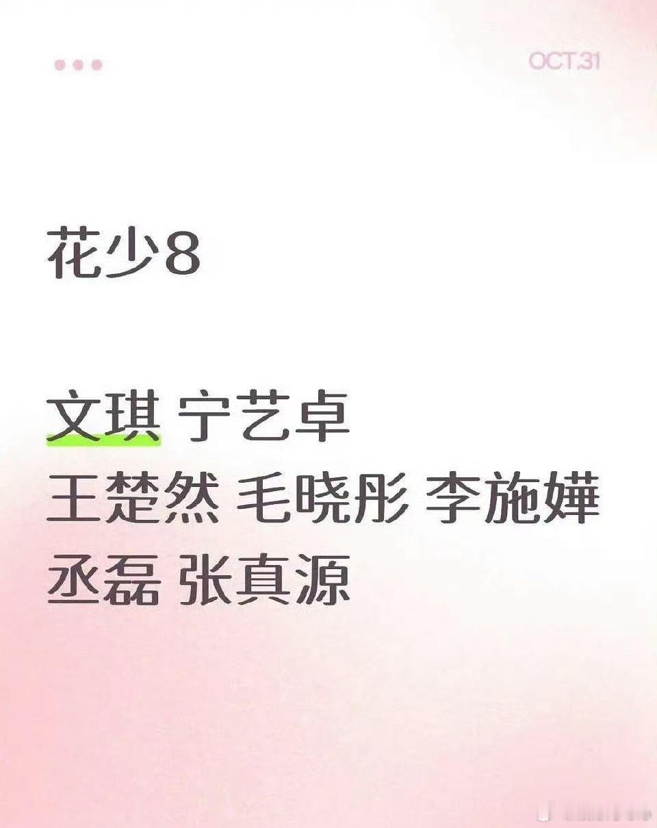 网传花儿与少年8嘉宾是文淇,宁艺卓,王楚然,毛晓彤,李施嬅,丞磊和张真源。。