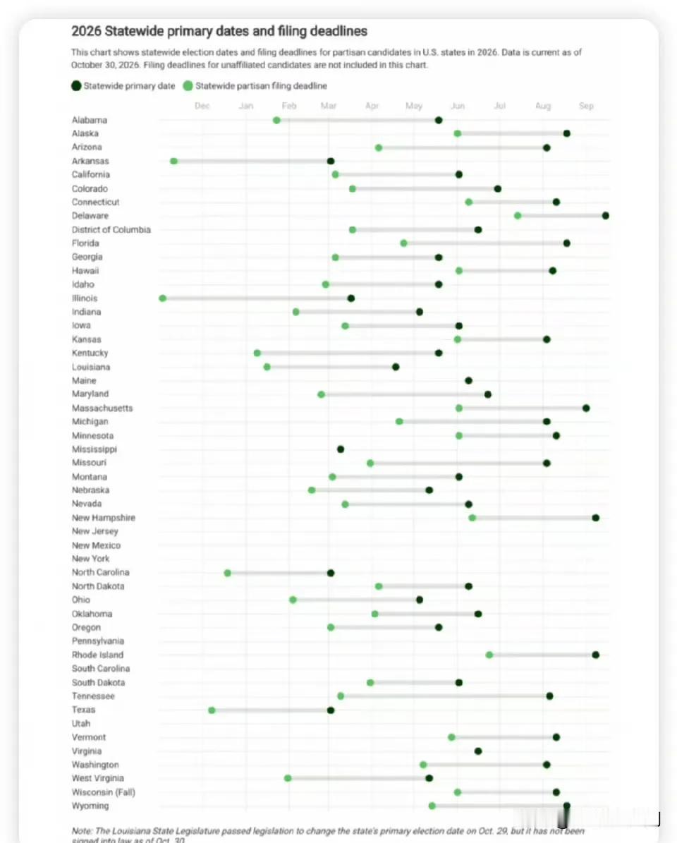 目前全美各州选区重划仍在持续推进中,整体分为五种类型,第一种类型是,已经“基本确定”使用新国会选区地图的州,分别是德克萨斯州,将增加五个倾向于共和党的联邦众议院席位;密苏里州和北卡罗来纳州,各增加一个倾向于共和党的席位。 全美重划选区进展的第二种类型——结果待定型,包含了加利福尼亚州,犹他州和俄亥俄州。加州将于11月4日对新选区进行“全民公决”,如果通过将增加五个倾向于民主党的国会选区。 全美重划选区进展的第三种类型是——有待联邦最高法院决定型,包含了路易斯安那州和阿拉巴马州。 第四种类型是,外部施加压力很大但仍未有实质性进展的州,比如印第安纳州,伊利诺伊州,弗吉尼亚州和佛罗里达州等。 第五种是如果全美划分选区争斗持续升温,也有可能加入战局的州,比如堪萨斯州,内布拉斯加州,马里兰州,新罕布什尔州,俄勒冈州和纽约州等。 总之从当前全美划分选区的整体进展来看,已经可以确认的是,将增加7个倾向于共和党的联邦众议院席位,加州全民公决通过的话,民主党也将增加五个席位,整体形势对共和党较为有利。 全美50州国会选区划分汇总,整体形势共和党占优