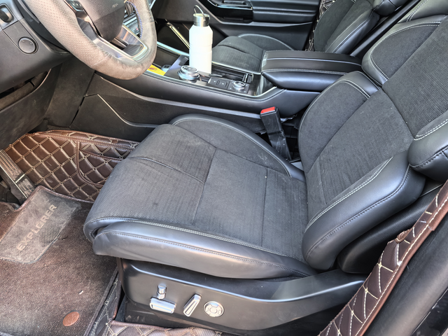 20款福特探险者升级23款内饰(2) 继续之前的改装!目前整个工程接近尾声,正在测试各个功能的完成度!主驾的座椅已经安装完成,副驾驶的座椅正在安装调试中,中控台完成了百分之九十五,还差一些小的饰板,需要等待到货!总体感觉还不错,改装后发现20款探险者的中控台比23款中控台要大,要厚实,给人感觉跟像是SUV的中控,23款的中控更规整,更秀气!目前车子在“小郝改灯”处进行灯光的升级!