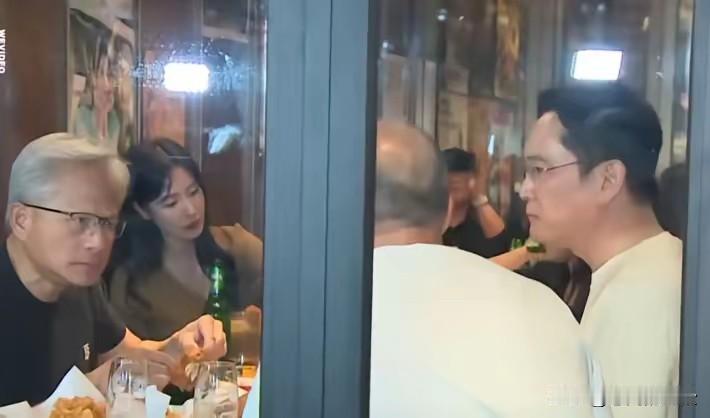 三星掌门人李在镕酒后调侃韩国民众,咋这么多苹果手机在拍我! 三位大佬吃完炸鸡配啤
