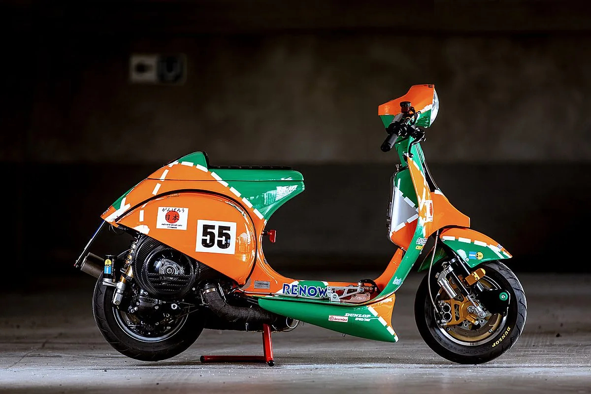 致敬1991年勒芒24小时耐力赛 冠军(马自达787B)的老式Vespa PX踏板改装,太帅了[馋嘴]~