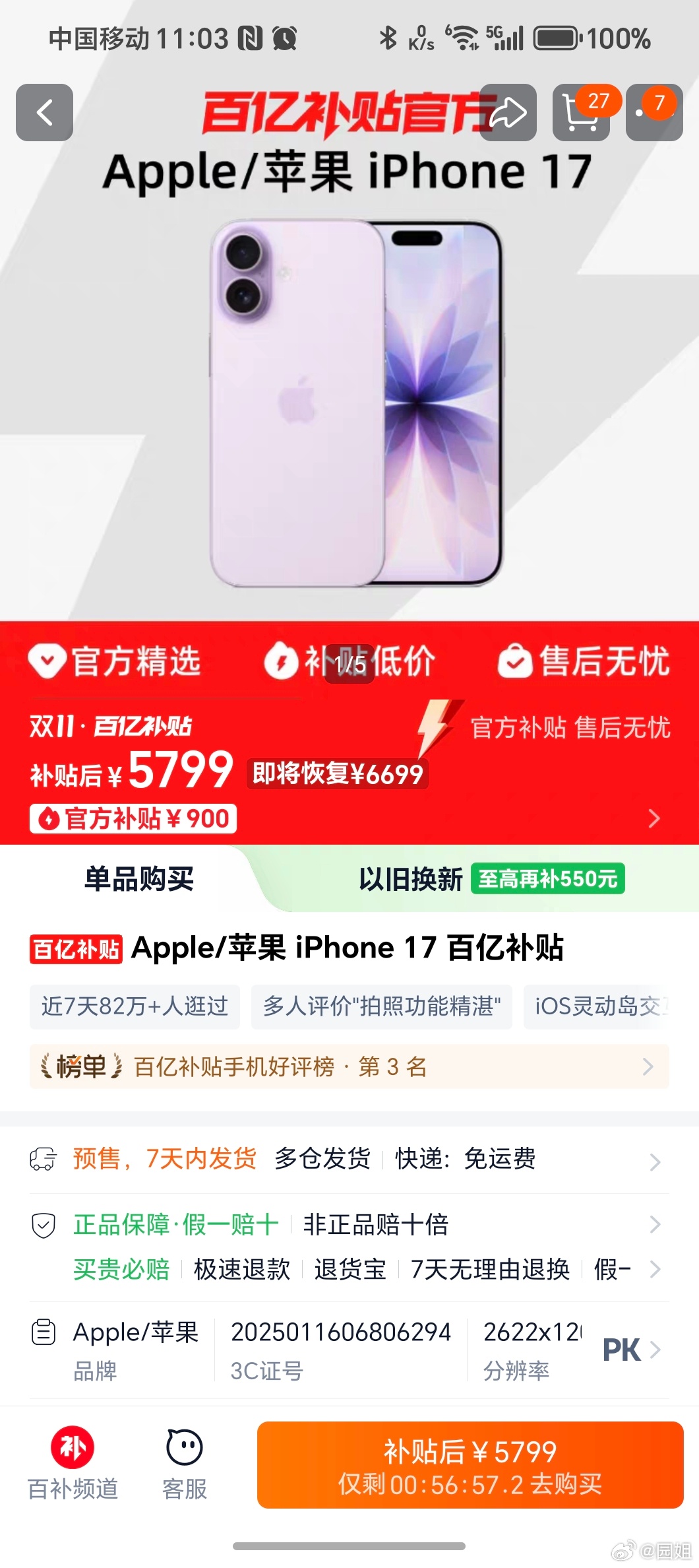 #双11脱水干货价#一年一度的双十一又要来了,那准备更新设备的小伙伴们可以关注一下,不少数码产品都有优惠。像iPhone 17 Pro Max就能领到天猫300的券,至于iPhone17标准版叠上各种补贴直接来到了5K档位,真的很香。此外像运动相机也有很大折扣,大疆action4叠完补贴直接来到千元档,Insta360 x5甚至已经补贴到两千元以内。整体看下来这次天猫双十一的补贴确实很香。