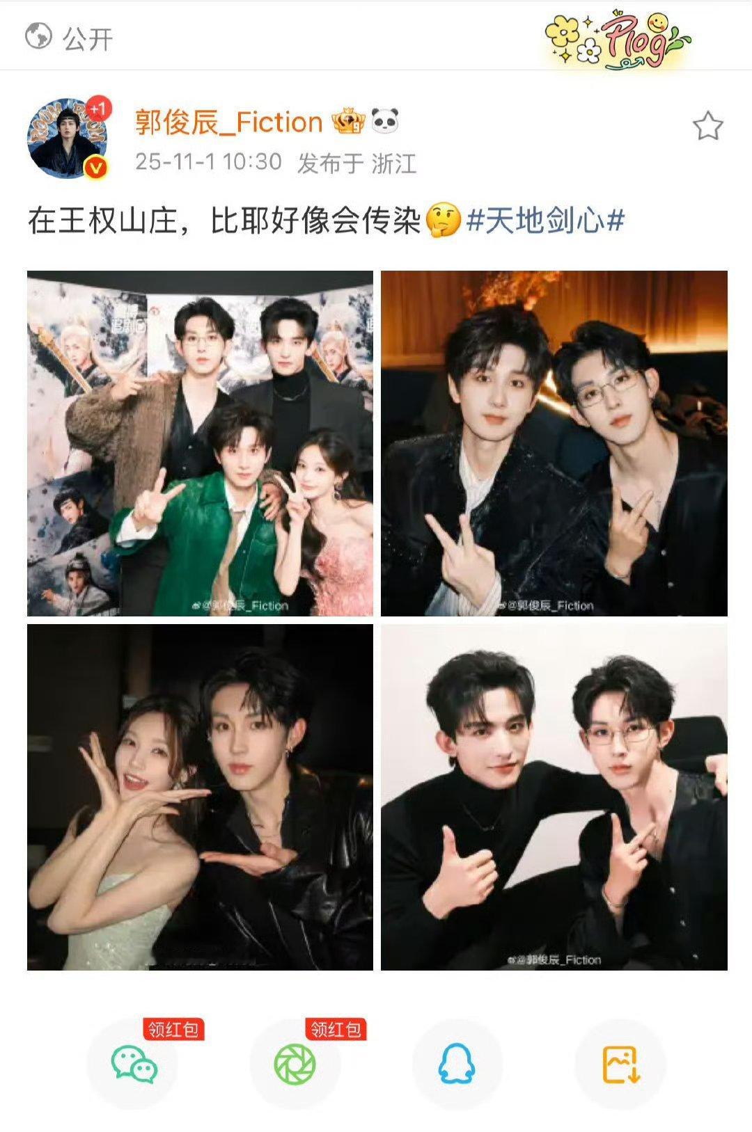 郭俊辰晒成毅李一桐常华森合照成毅李一桐常华森郭俊辰比耶合照 《天地剑心》主演同框啦!郭俊辰分享四人比耶照,俊男美女同框,视觉盛宴无疑!