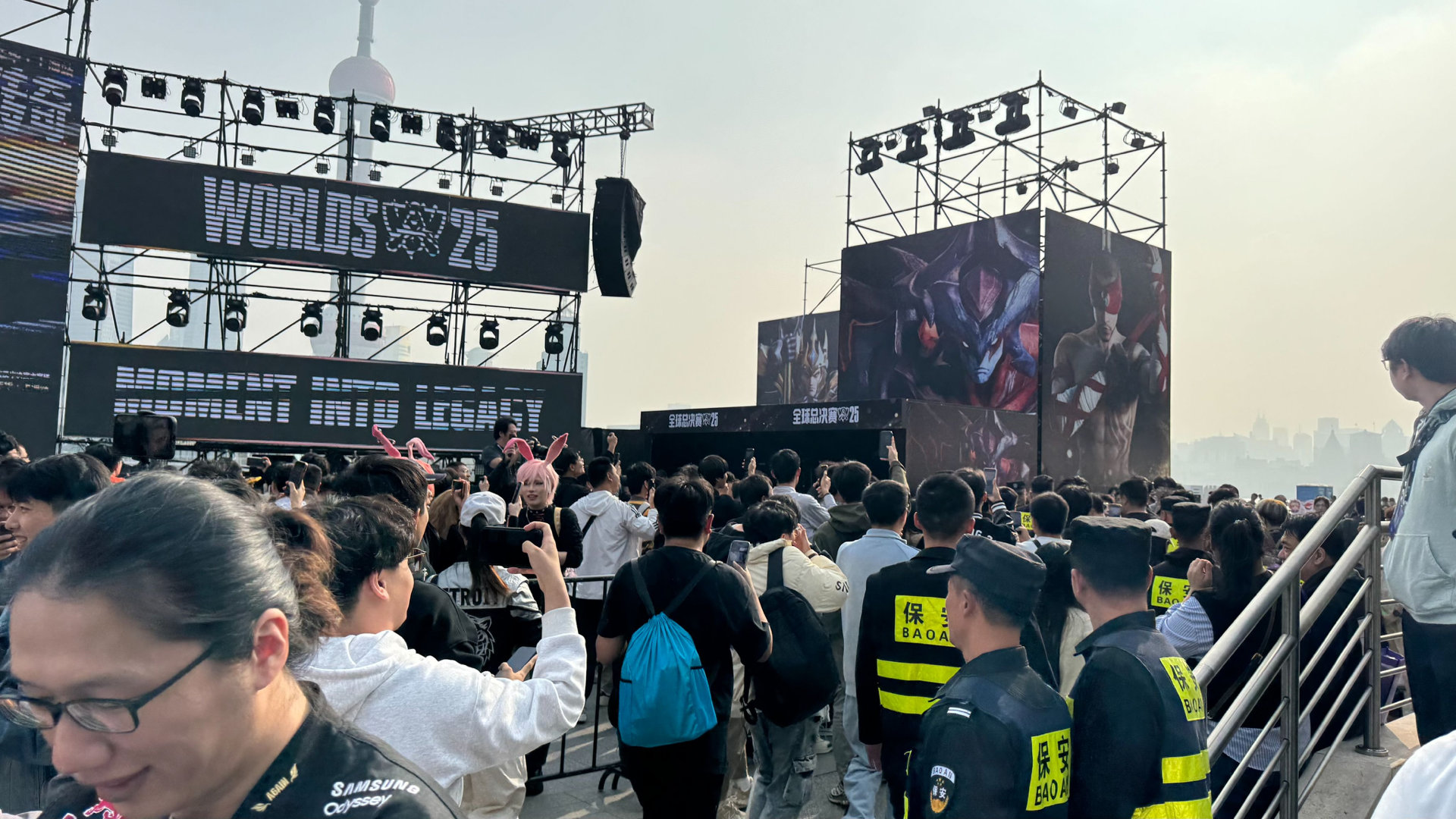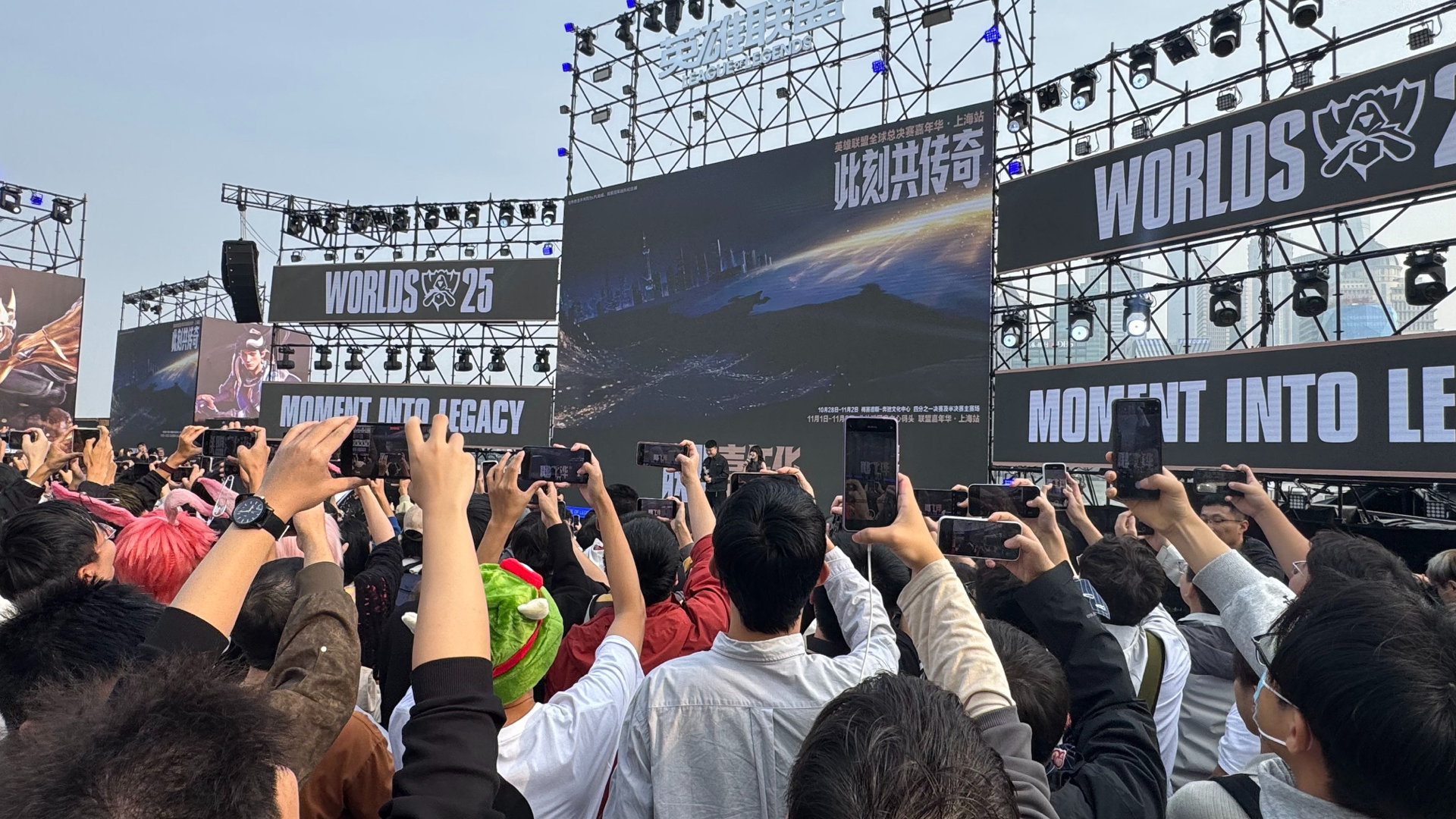 Uzi来s15线下了Uzi线下无处走位隔着屏幕都被现场的氛围惊到了!!真的好有激情[哇]今天上海外滩的颜色是联盟蓝!!