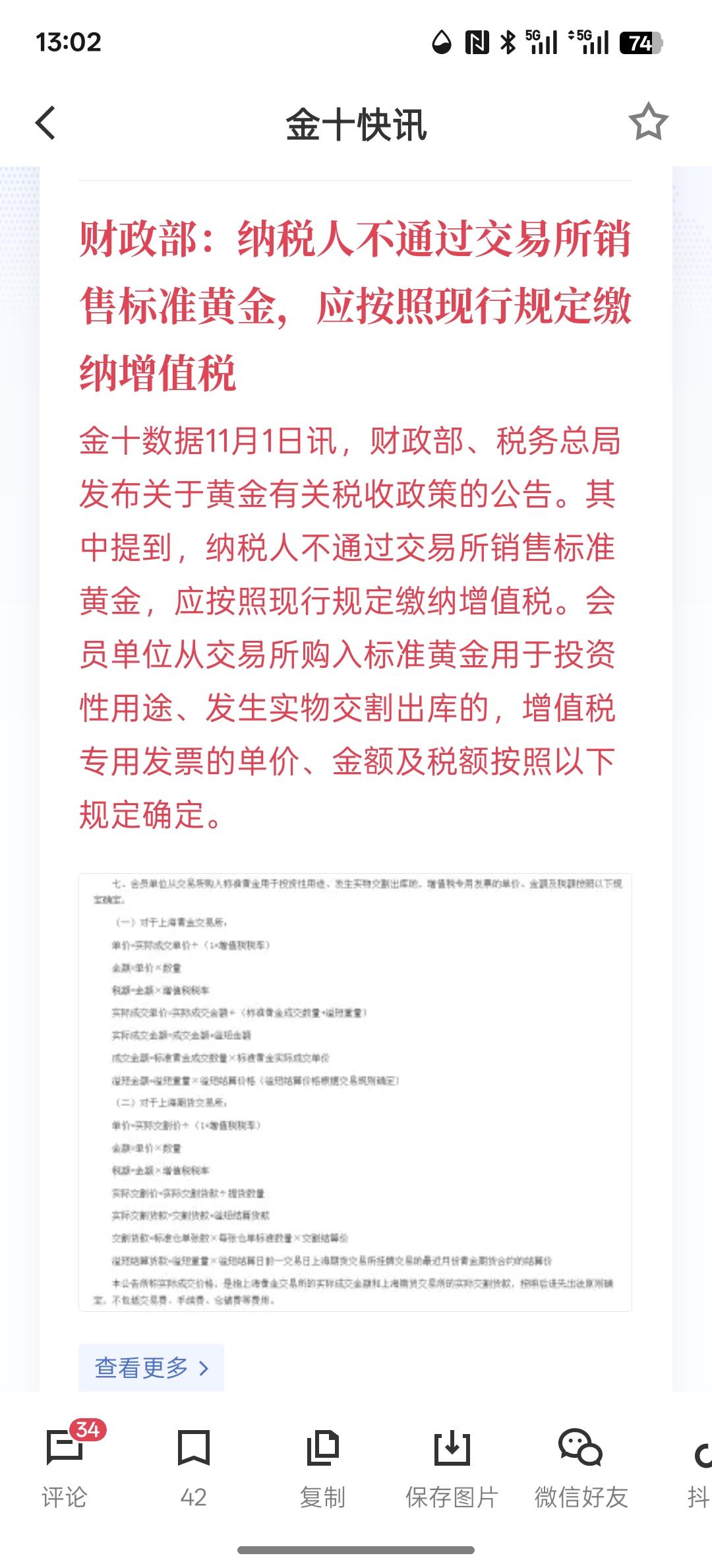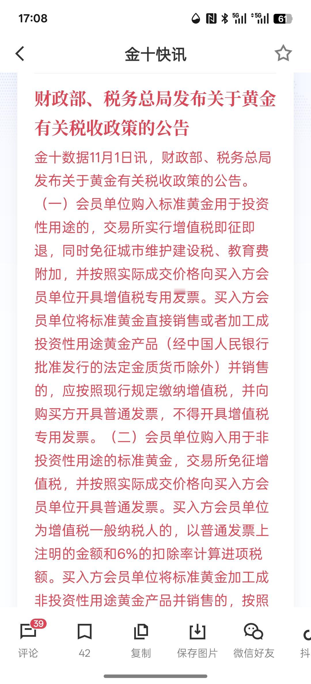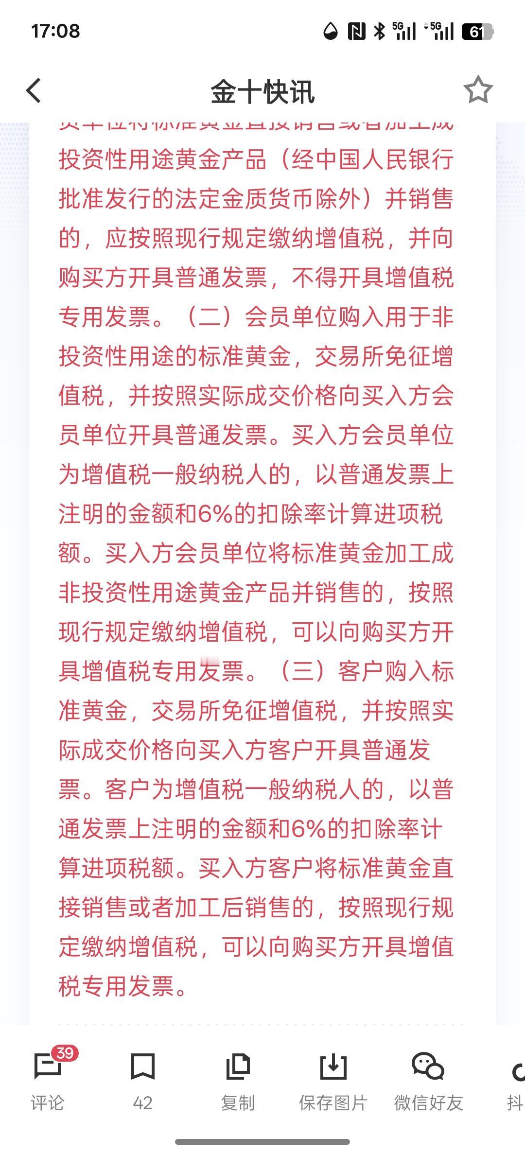 这利空黄金啊!投资黄金要开始收增值税了!现在黄金投资高潮热涨,黄金价格大幅上涨!那扣的税额是60%左右!买黄金就要开具有增值税的专用发票! 那对黄金来说,短期可能就是利空了! 现在只要你购买黄金,接下来你就要开发票,就要收你的税! 最近黄金价格确实上涨的离谱!