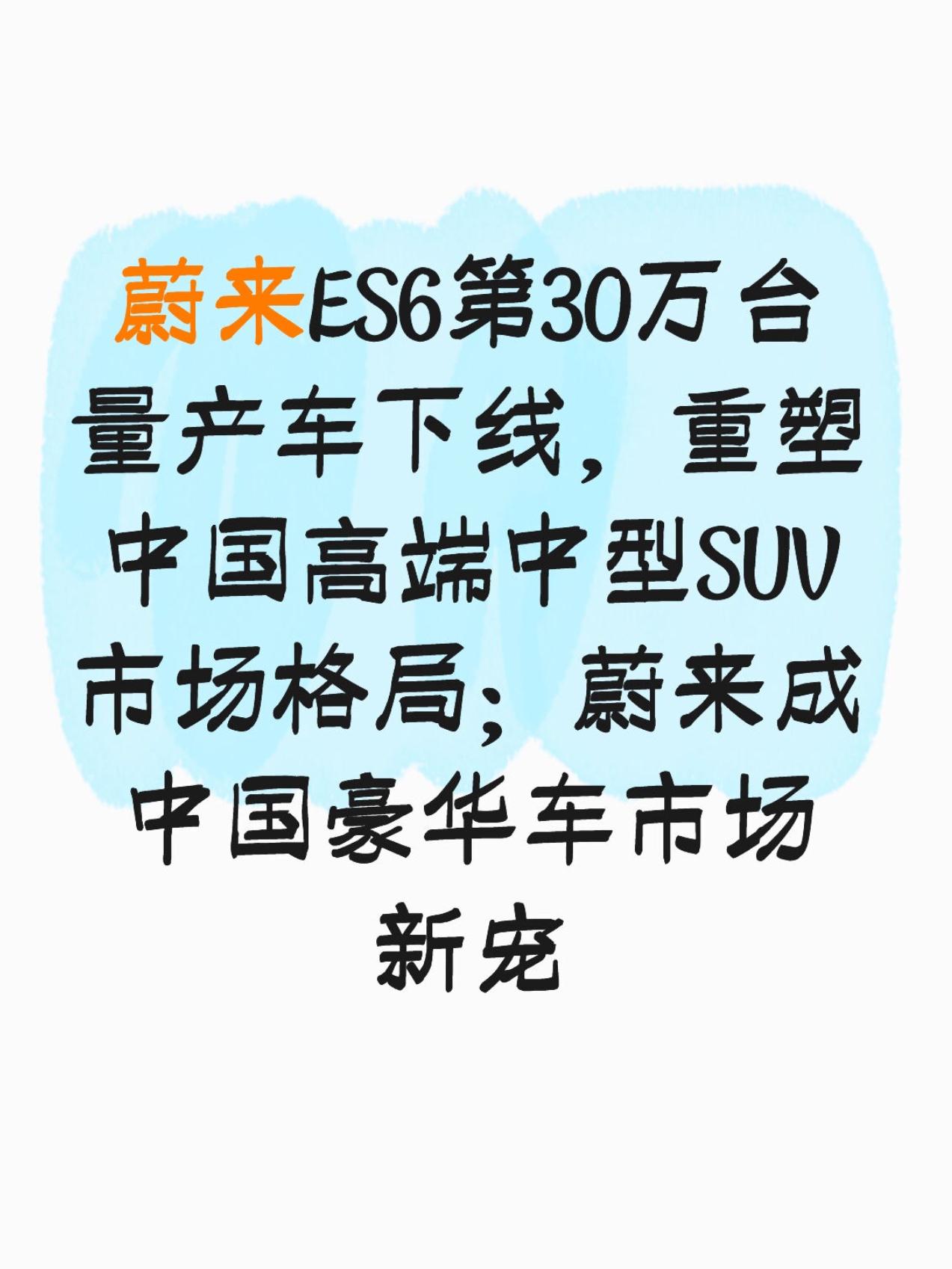 ES6: 30万以上高端中型纯电SUV选我 不知不觉中,传统BBA是不是已经逐步开始没落?我家附近很早之前,奥迪的4S店已经变成了蔚来空间,最近大众的4S店变成了理想的专卖店,新能源的趋势逐步明朗,国产的力量。 不知不觉,蔚来的ES6也已经卖了30万台了。这绝对是对标传统BBA中型SUV的抗鼎之作。当前,蔚来品牌定位已与BBA相当,新能源领域更是绝对占优,蔚来已经成为中国豪华车市场新宠。 不知不觉中,蔚来ES6作为蔚来销量的担当,成为中国汽车品牌30万级别里唯一一辆产量达到30万的新能源车型,树立了高端纯电SUV市场标杆。蔚来开始打破海外品牌对中国高端市场的垄断,站稳一线豪华品牌阵营,市场对蔚来品牌认可度越来越高。 蔚来