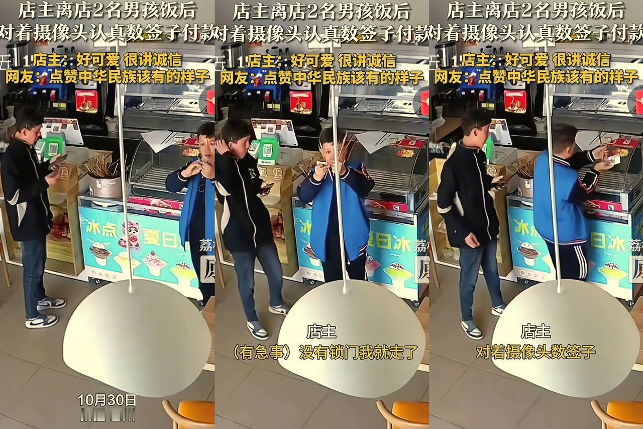 摄像头下的这一幕,让无数人心头一暖:新疆巴州两个男孩吃麻辣烫时,店主临时离开,他们竟对着摄像头一根根数签子,算好钱后工整放桌上。店主回来看到这一幕,翻看监控瞬间泪目,随手分享到网上,瞬间引爆全国热议! 这哪是简单的“付钱”?这是刻进骨子里的诚信!在无人监督的情况下,孩子们用最朴实的行动诠释了“诚信”二字的分量。这种品质,比任何物质奖励都珍贵,它像一颗种子,在人心最柔软处生根发芽。 我们总在抱怨社会浮躁,却忘了诚信本就是我们与生俱来的基因。这两个孩子用行动证明:诚信不是口号,而是刻在骨子里的教养。他们的父母、老师此刻一定无比骄傲,因为孩子活成了他们最期待的模样。 当诚信成为本能,社会才会真正温暖。你身边有没有这样的“诚信瞬间”?欢迎在评论区分享,让我们一起为正能量点赞!