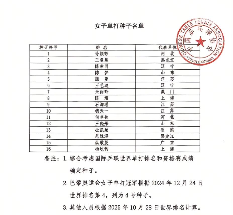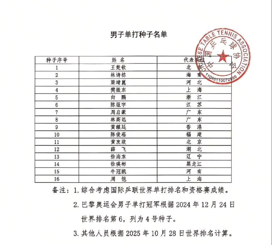 全运会还没有开始, 单打种子位却引发热议。 网友们各执己见, 公说公有理婆说婆有