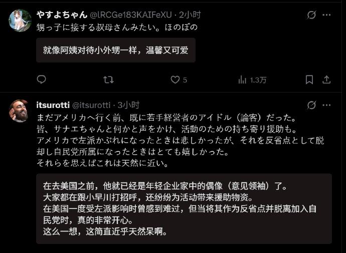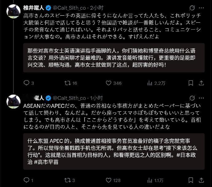 高市早苗搂着智利总统聊天 看得出来,高市早苗在本届亚太经合峰会的主要使命,是找各国领导人套近乎。 继强行与印尼总统普拉博沃尬聊后,高市早苗又被曝出了另一段与智利总统加夫列尔·博里奇“热情互动”的视频:高市早苗不仅一只手直接搂在了博里奇的肩膀上,而且还俯身贴面与博里奇交谈,距离之近使博里奇看起来有点不好意思。 另外,值得一提的是,根据这几天对日本网络舆论的观察,日本政府很可能出动了大批水军: 自从高市早苗对特朗普的谄媚奉承引发争议后,国外社交平台的相关新闻评论区被大批称赞高市早苗“亲切”、“有魅力”、“情商高”的日本账号刷屏——整齐划一程度堪比饭圈控评。 一个最直观的例子,就是高市早苗作为自民党推出的极右翼代言人,之前她的社交账号评论区里经常充斥着各种极端言论,但这几天这些言论完全消失了,取而代之的是大量肉麻的称赞。