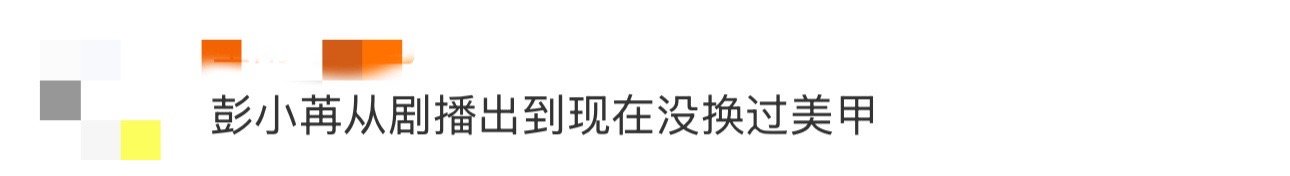 彭小苒从剧播出到现在没换过美甲 在这个快节奏的娱乐圈,彭小苒用指尖的颜色,为角色“雨墨”留了一盏灯。自剧播出以来,她从未更换美甲,这份长情与专注,真的让人肃然起敬。
