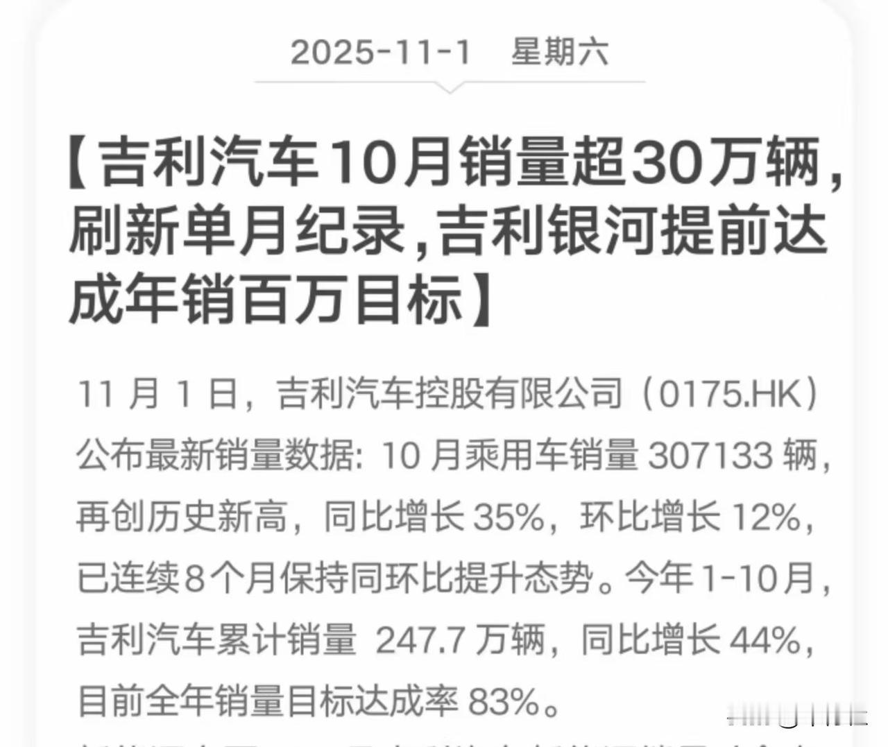 比亚迪极为头疼的对手 吉利起来了 30万辆,今年第四季度是不是可以冲一下100万辆? ……