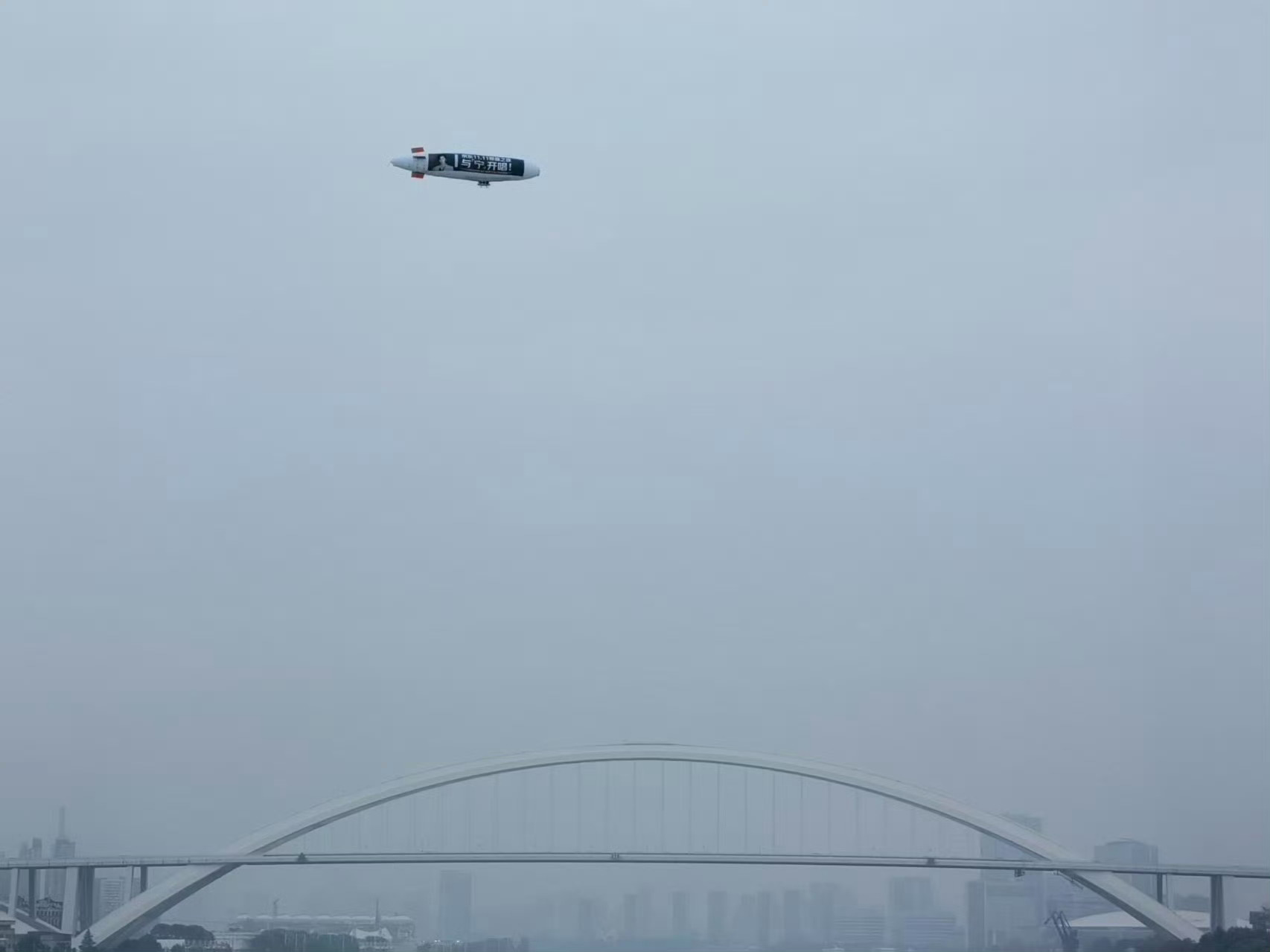 路人偶遇黄浦江巨型刘宇宁飞艇 | 谁在黄浦江上空放了个刘宇宁