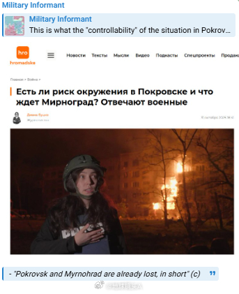 乌克兰士兵承认:“波克罗夫斯克和米尔诺格勒已经失守”