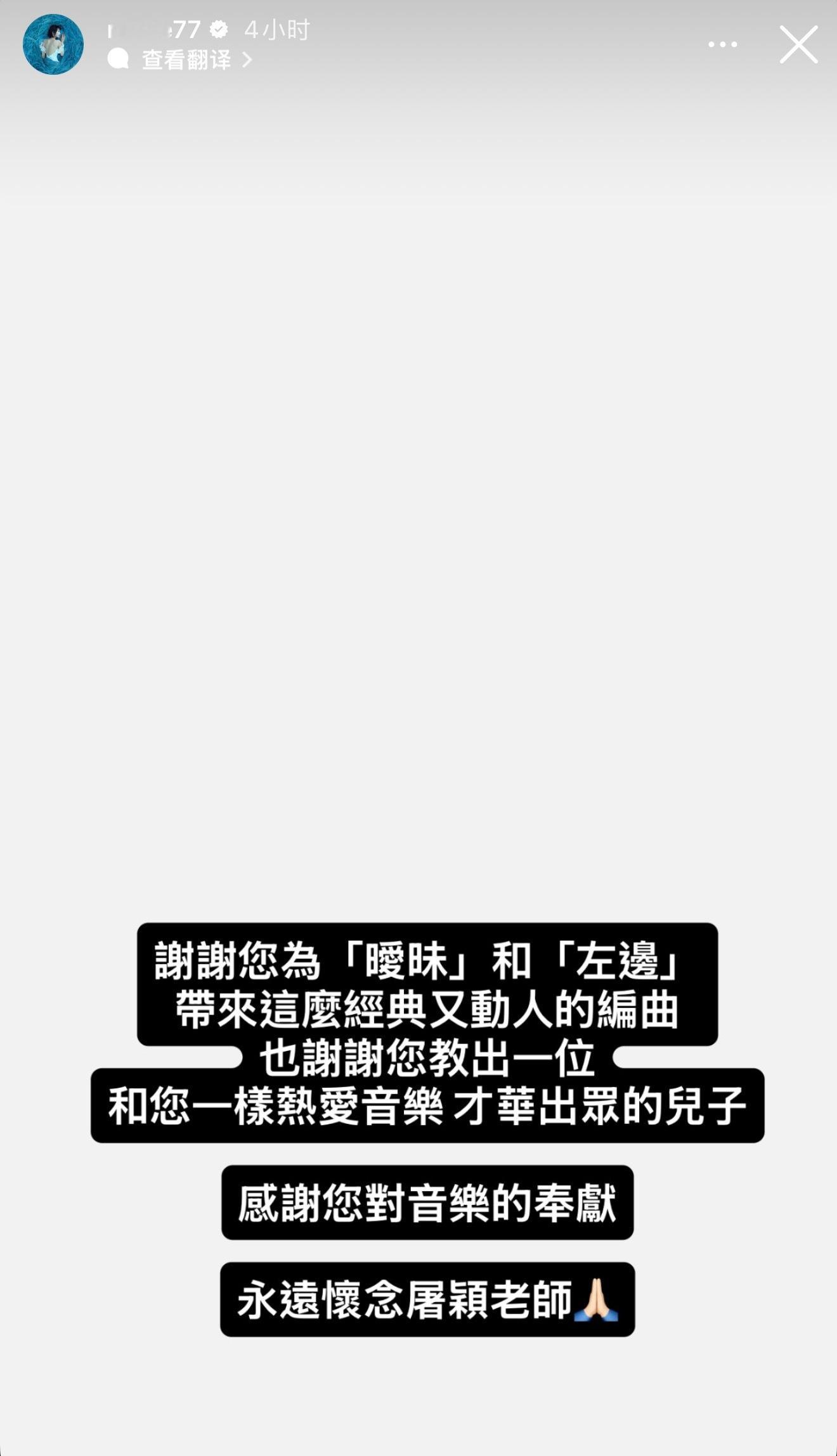 听台湾流行乐长大的一代人对屠颖的名字肯定不陌生,太多流行金曲的编曲都出自他手,人生太无常,谁也想不到意外发生,好难过。