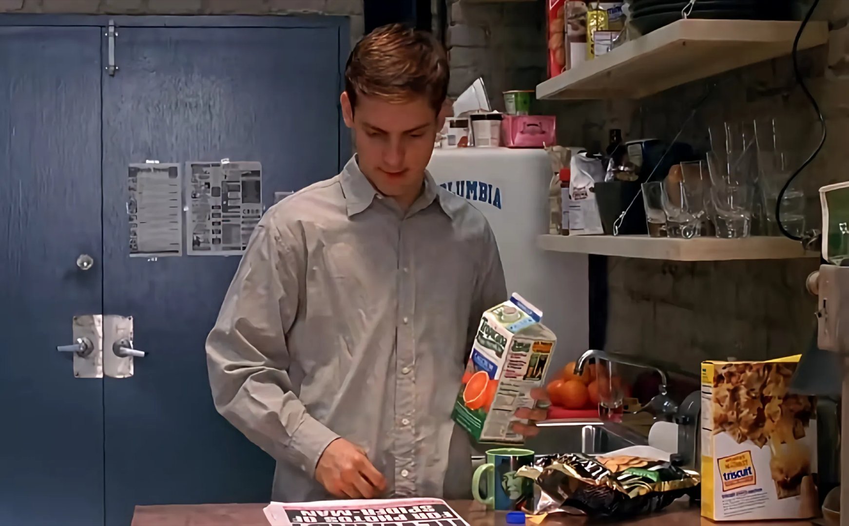 知道为什么初代蜘蛛侠那么屌吗, 请注意看初代蜘蛛侠喝水的杯子, 你就说是什么给了他力量吧。