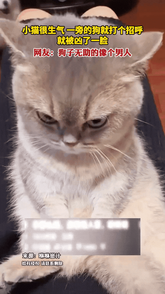笑不活了!浙江,小猫咪惹主人生气后被挨揍了一顿,然后它就跑到墙角瞪着眼嘟着嘴巴生闷气。没有眼力见的狗子直接跑到猫咪跟前打招呼,直接被凶了一脸。网友:狗子无助的像个男人! 喂猫时被突然挠手的主人,反手给了小猫咪一巴掌,谁料这小祖宗记仇得很,当场打翻水碗,气鼓鼓跑到椅子上对着墙生闷气,瞪着眼、嘟着嘴,那傲娇模样像极了受委屈的大小姐。 隔壁狗子听见动静赶来凑热闹,见主人收拾残局便识趣躲开,转头就去找“好朋猫”贴贴。先是轻轻试探摸了摸,猫咪压根不搭理,它还不长记性地拽了拽,直接撞在猫咪的怒火枪口上。 下一秒猫咪转头凶脸暴击,狗子瞬间懵在原地,那手足无措、委屈巴巴的样子,被网友笑称“无助得像个男人”。想必它心里满是疑惑:手那么短还这么凶,一天到晚都在生气,到底谁惹到我的大小姐了? 这对“没头脑和不高兴”的组合,把宠物间的小互动演绎得又萌又真实。猫咪的傲娇记仇、狗子的憨憨无畏,藏着最纯粹的治愈感,也难怪网友直呼“萌化了”,原来快乐真的能从这些小生灵的日常里,轻易溢出来~