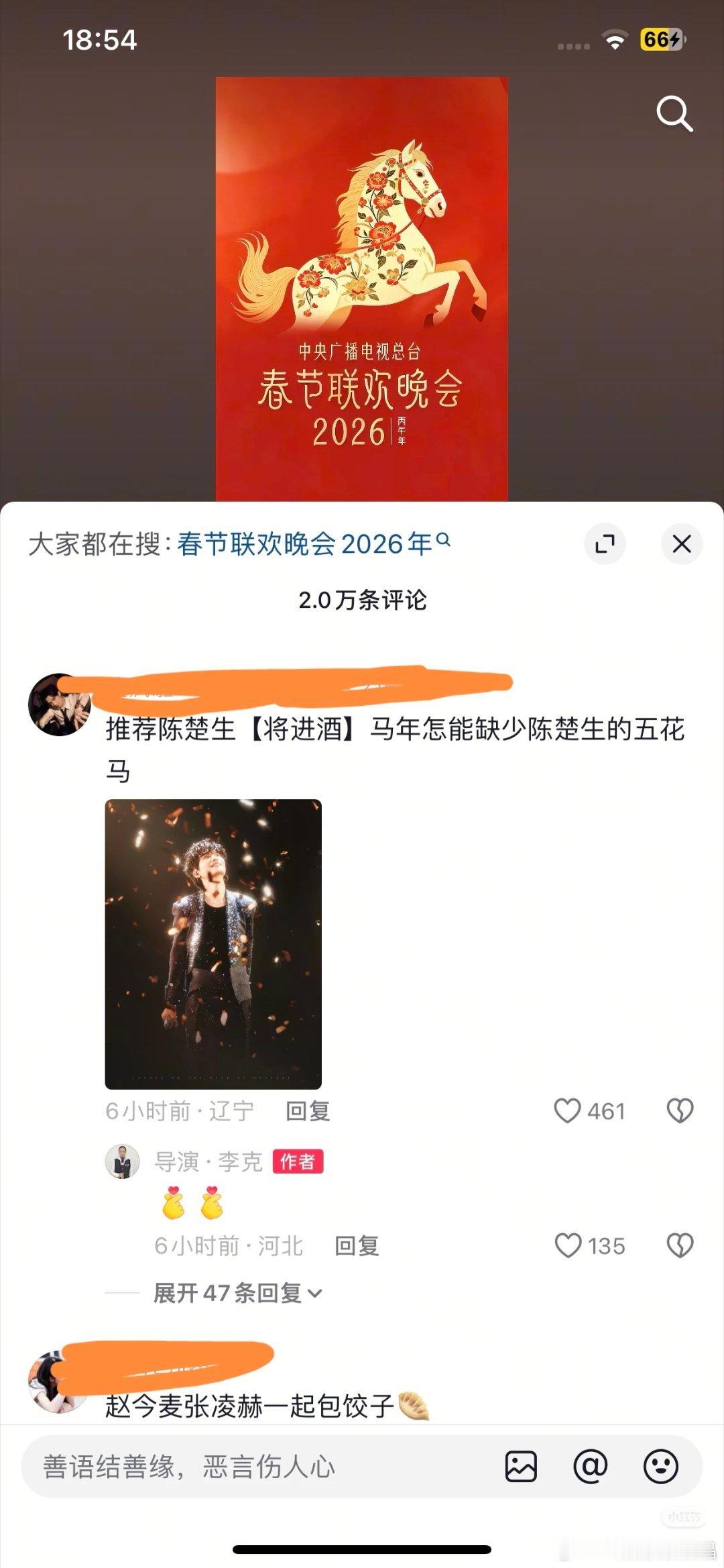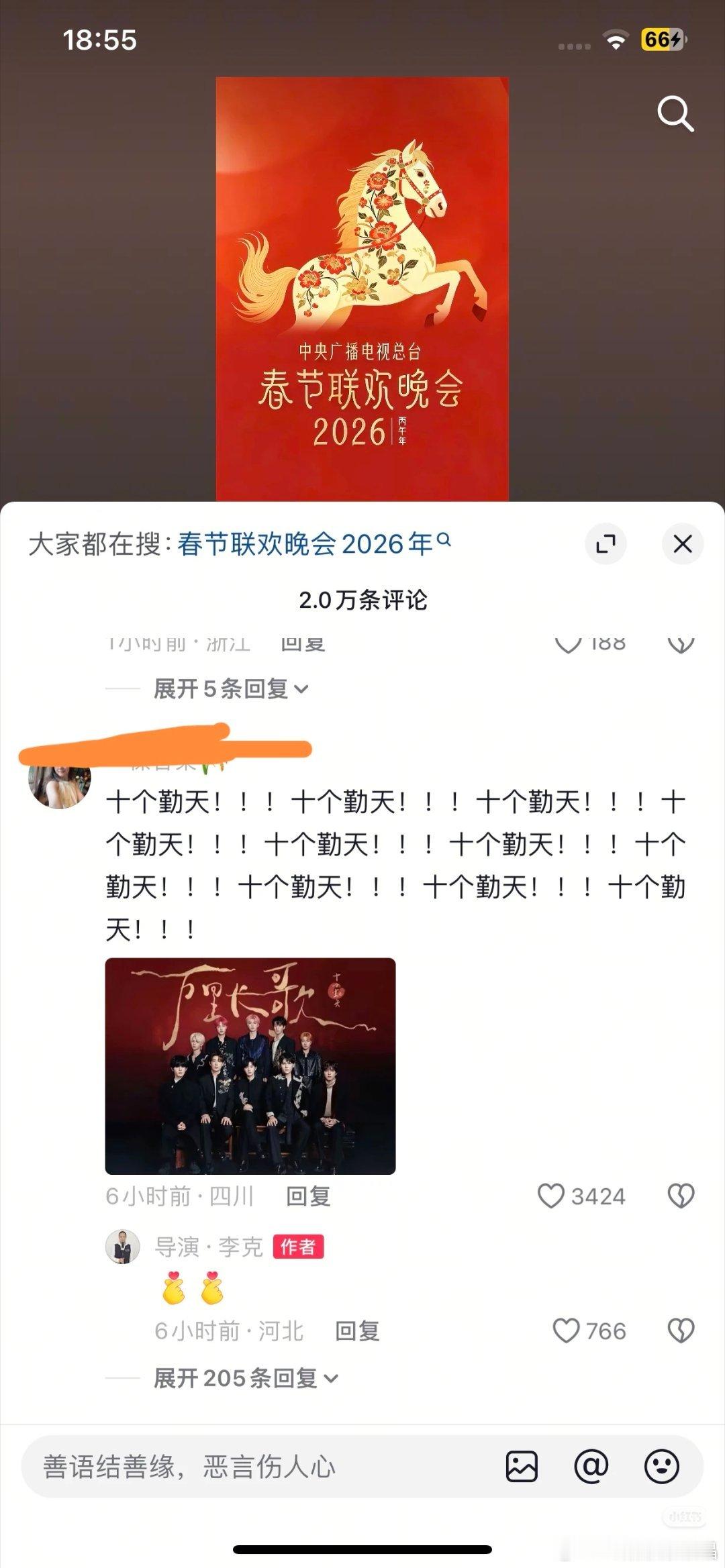 导演李克回复了孟子义李昀锐粉丝、十个勤天粉丝和陈楚生粉丝[笑而不语]是不是上春晚概率蛮大的?