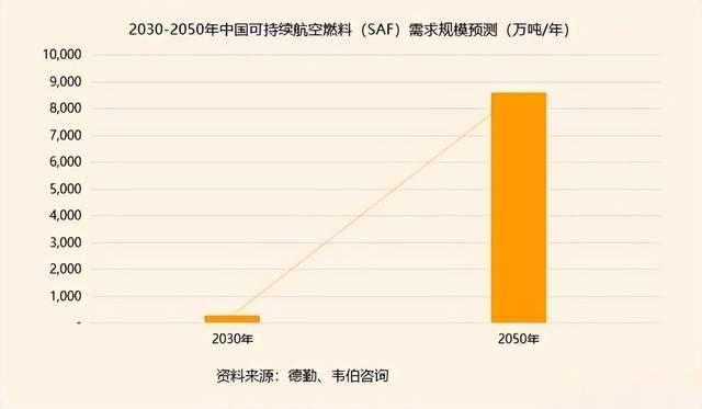 随着政策推动和技术进步和产品价格下降等因素的推动,预计到2030年,中国的可持续航空燃料(SAF)需求量将达到300万吨/年;