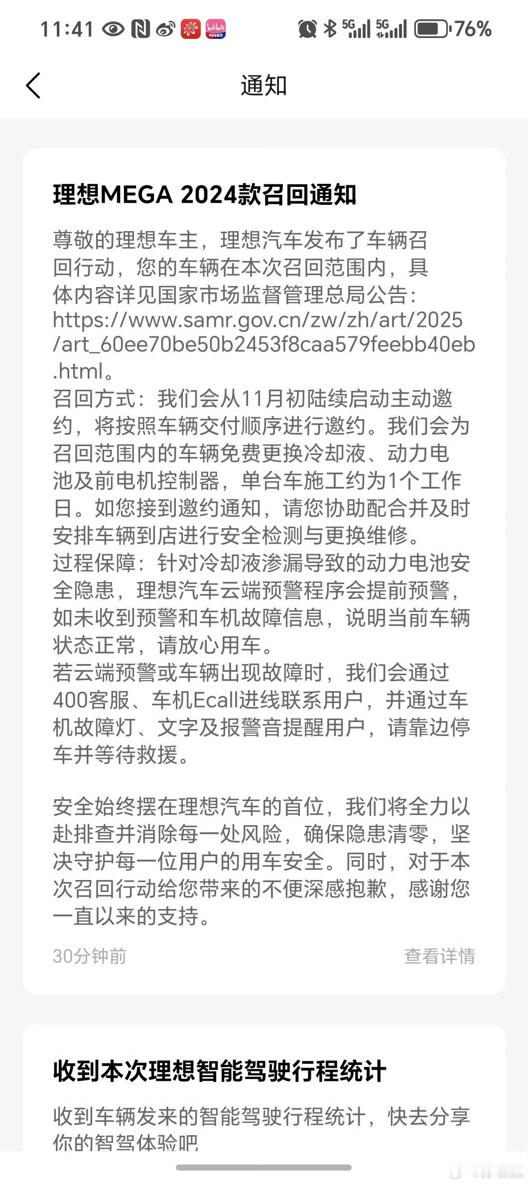 安全无小事,希望能做个榜样,以后其他品牌出问题也能及时处理。理想mega