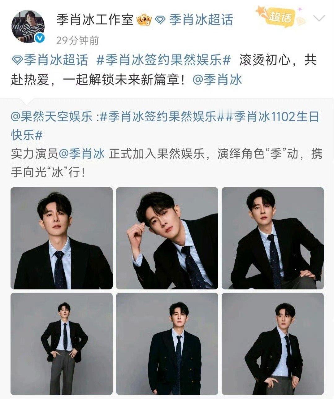 季肖冰生日当天签约果然娱乐 季肖冰生日当天官宣加入果然娱乐,用一份沉甸甸的合约开启新旅程!没有花哨的仪式,只有踏实的选择和双向的信任,粉丝感慨:“这才是成年人最酷的生日方式——用行动书写未来!” ​​​