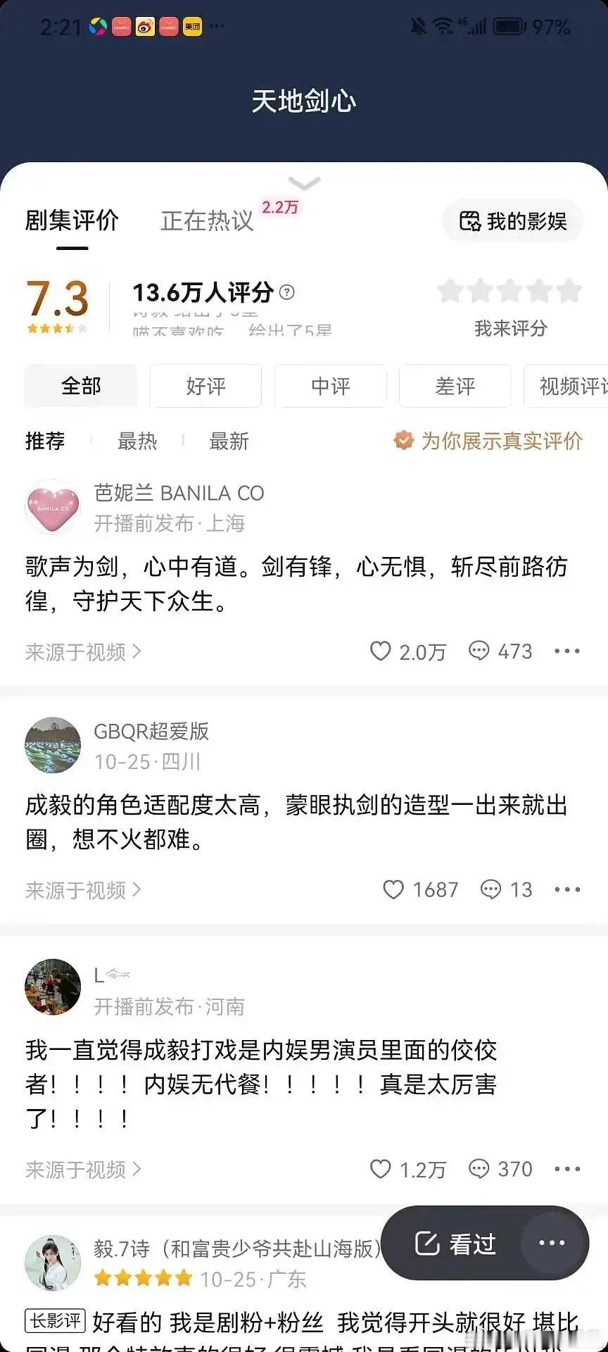三宝抖开分, 水龙吟7.5分,暗河传7.3分,天地 7.3分。